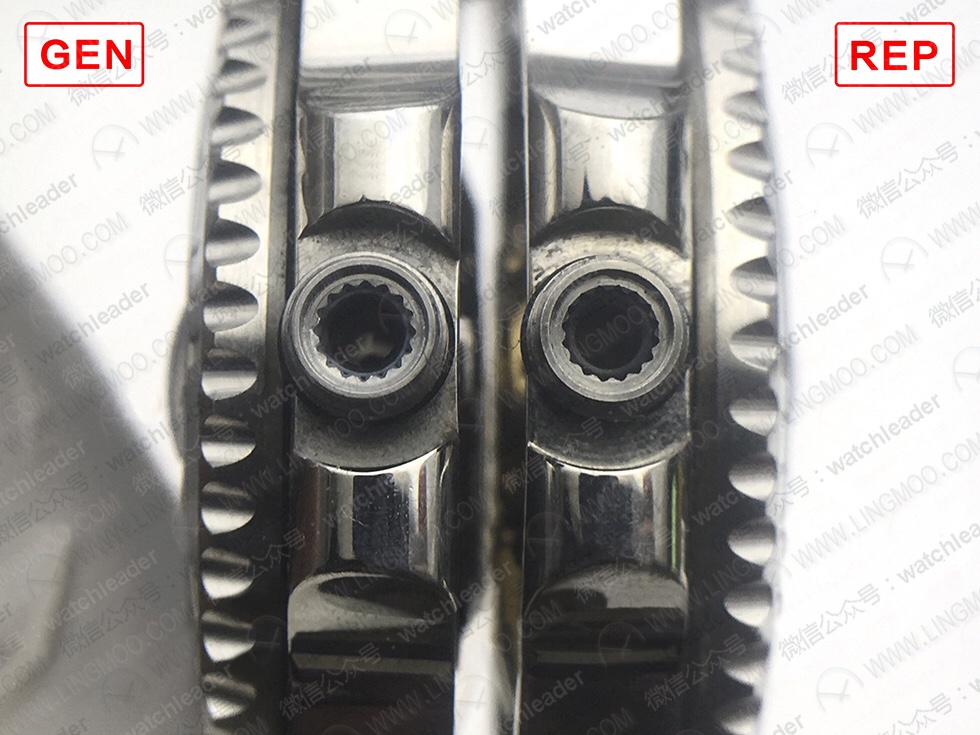 смотреть нужно на положение заводной головки. если внутри суперклон - зг имеет правильное положение как и у оригинала, если внутри клон эташки зг будет смещена вниз. На этом фото хорошо видно причину такого расположения. Скажем так, насечка на зг в оригинале едва выступает за нижнюю грань корпуса часов, почти заподлецо.