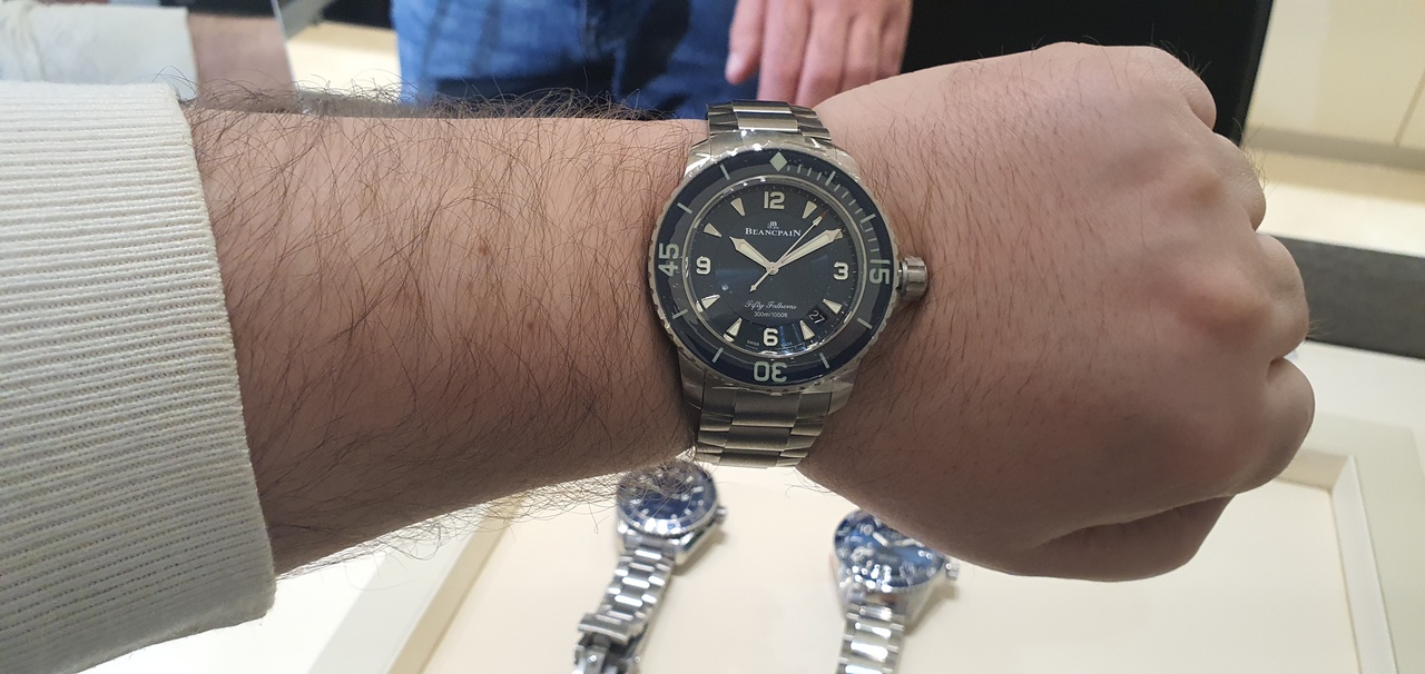 Вчера померил GO SeaQ Panorama Date. По ощущениям визуально как моя РО. Думал 51,3 мм от ушка до ушка против 49 мм на "планете" зрительно сделают их крупней, но нет чуда не случилось. Из моих нареканий не эстетичная стыковка браслета с корпусом, где эндлинки не огибают безель, а образуют прямую линию, полированный центральный ряд браслета для дайвера это лишнее и простоватые, незатейливые стрелки. Но с этим можно мириться в целом часы нравятся.