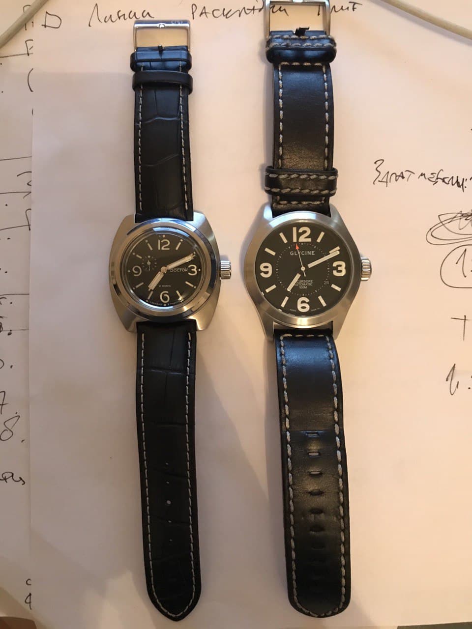 По размеру часы меньше, чем я думал. На фото они рядом с 44 мм Глицинами. Но это точно не минус. Прикольные такие, но нижние углы корпуса реально острые наощупь. Качество устраивает, за такие деньги уж точно. Выбивается только заводная головка. Какая-то она более коряво обработанная по сравнению с корпусом. Цифер выполнен офигенно. Только я думал что субцифер будет именно на уровень ниже в сендвиче, а он просто вдавлен относительно основной чёрной плоскости. Но норм. Ремешок действительно милипусечный. Ощущаются часы приятно и точно не кажутся дешёвкой, хотя по факту оно самое. Для коллекции рекомендую. Я лично планирую их использовать как повседневные, которые не жалко. Пока не надоест. На силиконовый ремень может посажу и вообще пофигу всё. https://yadi.sk/i/C1HfRQD4Ux-L2A https://yadi.sk/i/m7SGU9bD6ZoRsg P.S. Как тут фото нормально вставить-то? Сорян за ссылки. |