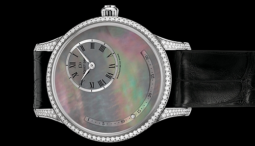 В сентябре нынешнего года в часовых бутиках должна появиться новая модель в необычном цветовом исполнении от JAQUET DROZ. La Rattrapante, впервые показанный на весенней базельской выставке, будет входить в линейку La Chaux-de-Fonds 1738. Корпус изготовлен из 18К красного золота и имеет 45мм в диаметре, циферблат эмалевый Black Grand Feu, ручной работы. Водостойкость 30 метров. Механизм автоматический Jaquet Droz 6886, сплит-хронограф с колонным колесом, запасом хода 40 часов, частотой колебания баланса 21 600 пк/час, 39 камней. Ротор автоподзавода сделан из 22К золота.