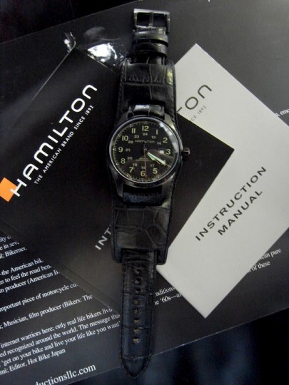 За основу взята классическая модель Khaki. Сохранив оригинальный дизайн, усовершенствования коснулись роскошного ремешка из крокодиловой кожи и некоторых деталей, например, черный матовый циферблат. На оборотной стороне часов выгравировано название Neighborhood. Вложение 51703Вложение 51704 Источник: http://chronoscope.ru/2010/06/khaki-...hood-hamilton/ |