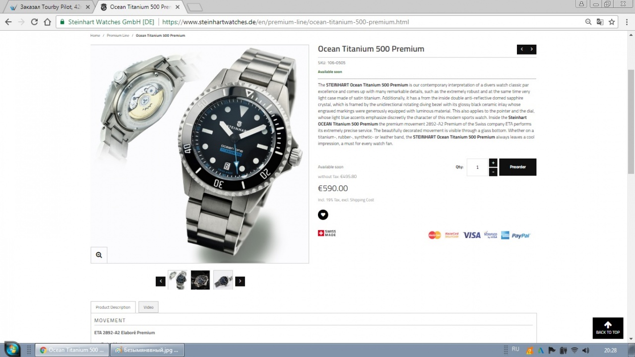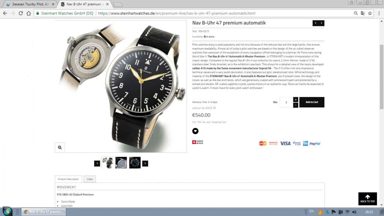 имел место на сайте штейнхарт, факт введения потребитителей в заблуждение? к примеру сегодняшнее положение дел: на фото и в описании калибр Soprod A10, в тех.параметрах: ETA 2892-A2 Elaboré Premium: Вложение 1951823 чему верить? ещё одна неувязка, на фото опять же сопрод, в описании ета: Вложение 1951832 у волшебника Сулеймана все по-честному, без обмана (с) :D |