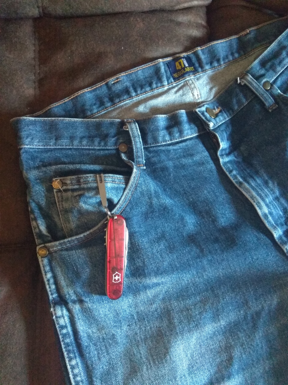Хаха! Тоже как-то повесил на привычный карман новый ножЕг. У него клипса точеная, толще и более агрессивной формы, чем у предыдущего ножечка. Возможно разная длина и положение клипсы относительно ножа и его положения в кармане сказались. В общем, слезаю я с мотоцикла, убираю ключ в карман где...уже нет ножа. Расстроился, выругался. Новая цацка, первый выгул. Денег стоит, опять же. Вдруг что-то меня по заду треснуло. Оказалось, нож клипсой за свес куртки зацепился, и капитально так. Ну и вынула его куртка из кармана. Ножег то легкий - титан. И мелкий. Вот я и не заметил пропажи))) Обрадовался находке. Но перепрятал :D