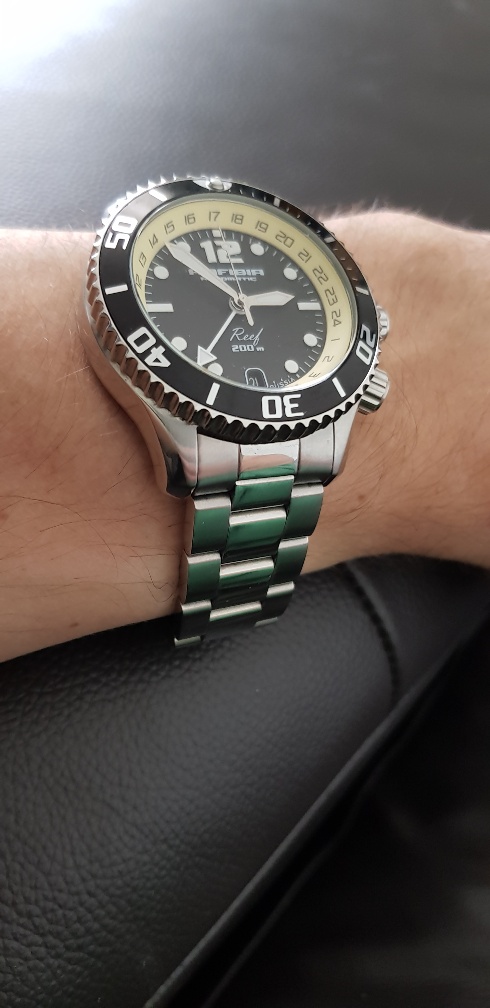 Довольствуюсь Мераномовскими переходным звеном и универсальным браслетом. Собирал на коленке, поэтому один краешек подогнулся, но в целом нормально смотрится, и гораздо лучше родного раллийного. Снял два звена, на худую руки пришелся впору.