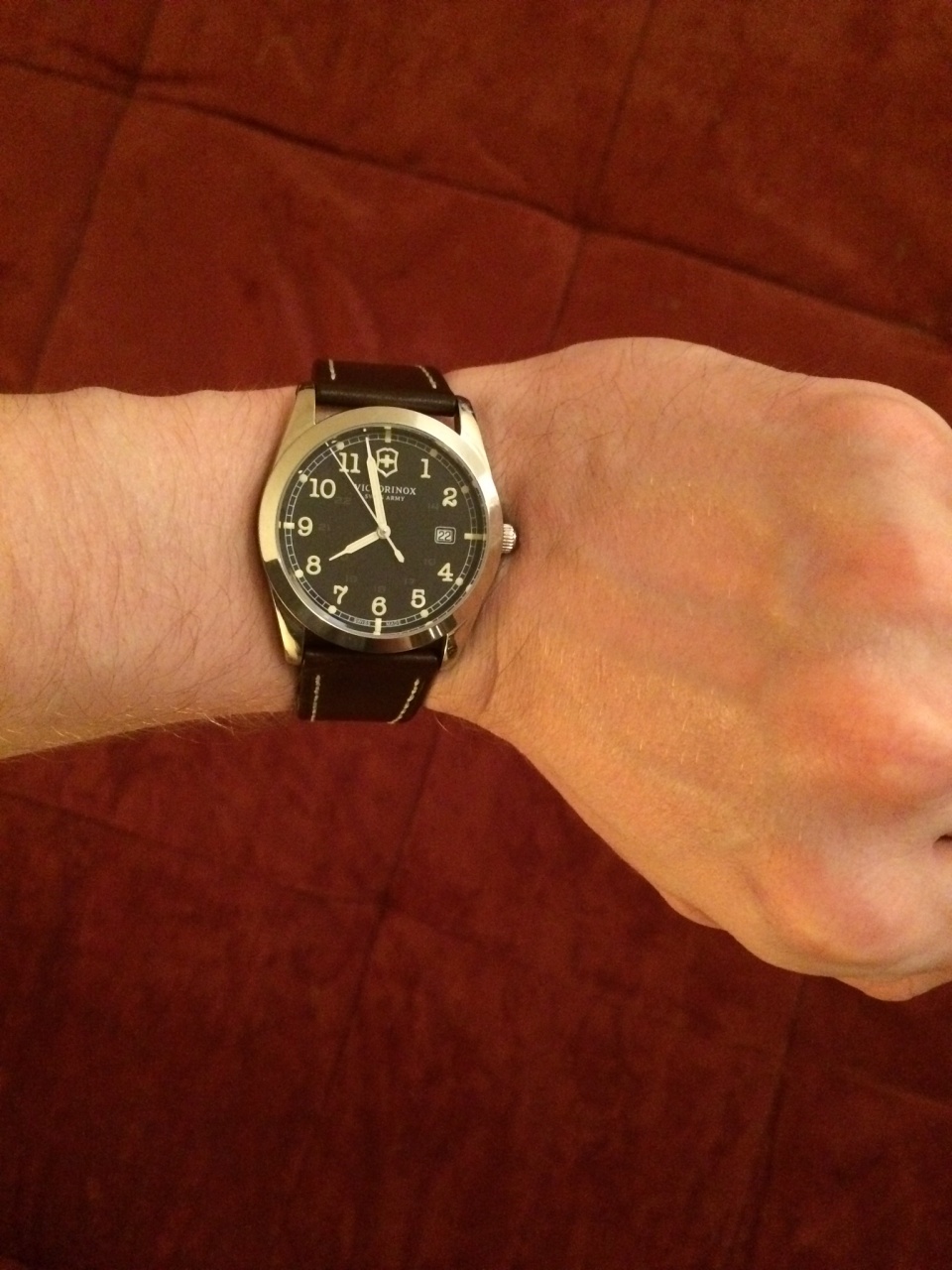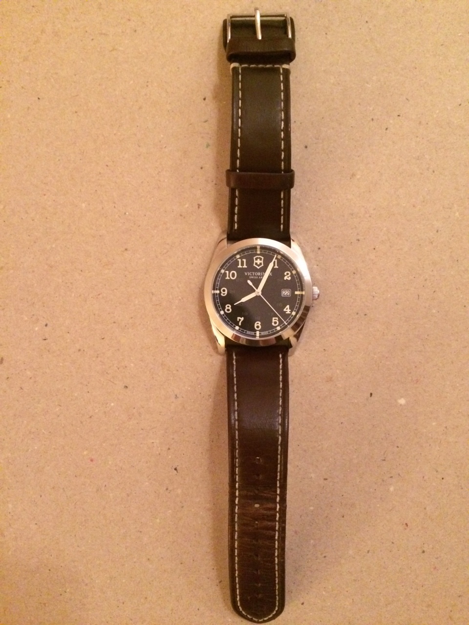 Месяц как купил себе Викториноксы ... бюджетный вариант ... здесь они 18 500 стоят (но там 32 мм корпус, а у меня 38 вроде), плюс доставка, получается рублей в 20 встанут ... я же за них на амазоне отдал 148 долларов и это с бизнес доставкой в течении 4-х рабочих дней... в итоге с доставкой они опоздали на один день и после 2-х минутных переговоров с суппортом амазона мне вернули 42 бакса )))) таким образом часы обошлись мне в 105 долларов, что 7 000 рублей ... Часы нравятся, исполнение отличное, легкие, информативные, с заветной надписью awiss made... на сколько они там отстают или опаздывают не засекал, но сейчас смотрю время московское 21:14 и на часах четырнадцать минут десятого :cool: ... есть минус всего один ... с 35 по 5 секунду когда движется секундная стрелка то подергивается и в риски чуть не попадает ... но за эти деньги я смерился с этим, да и заметно это только если присматриваться ... Доволен в общем часами я... Вот они на амазоне