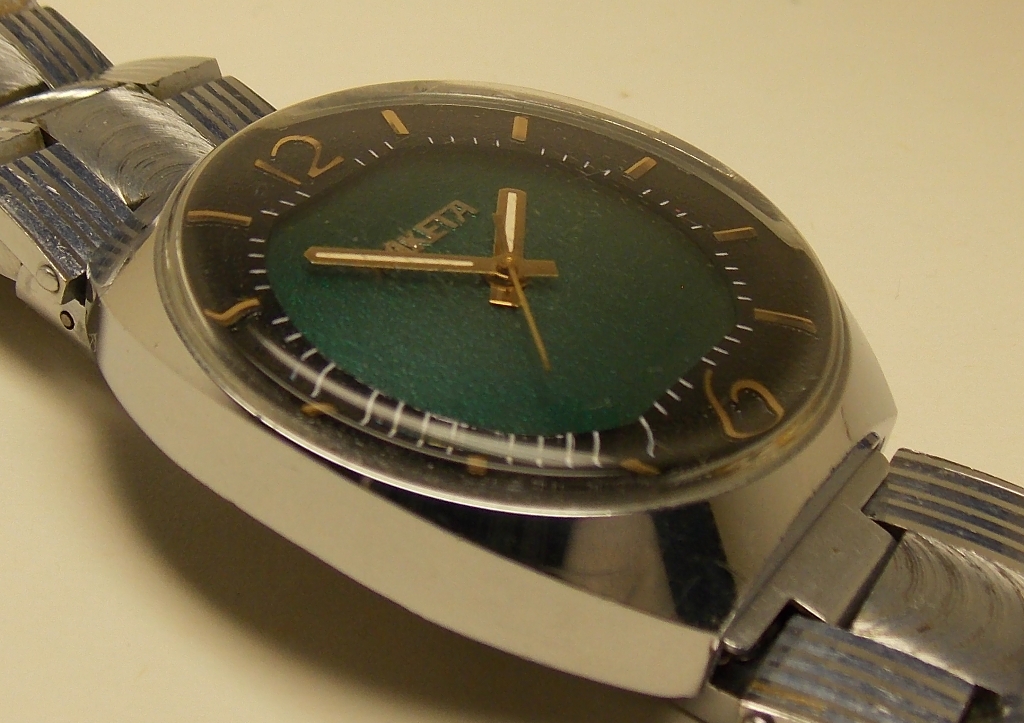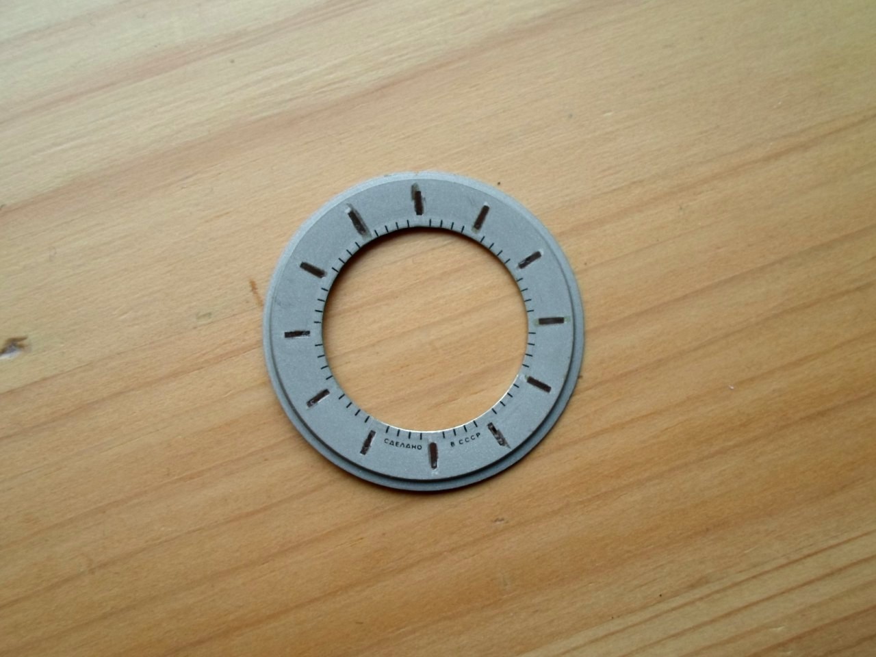 Позолоченный вариант тоже с белой краской и черной минутной разметкой на ободке, вы же знаете. У моего экземпляра этот ободок интересный - не чисто белый, а светлосерый с серебристым оттенком. Часы в состоянии новых, видимо хранение повлияло. Или какой-то поздний вариант. Я нашел такой белый ободок под хром, поменяю - сравню.