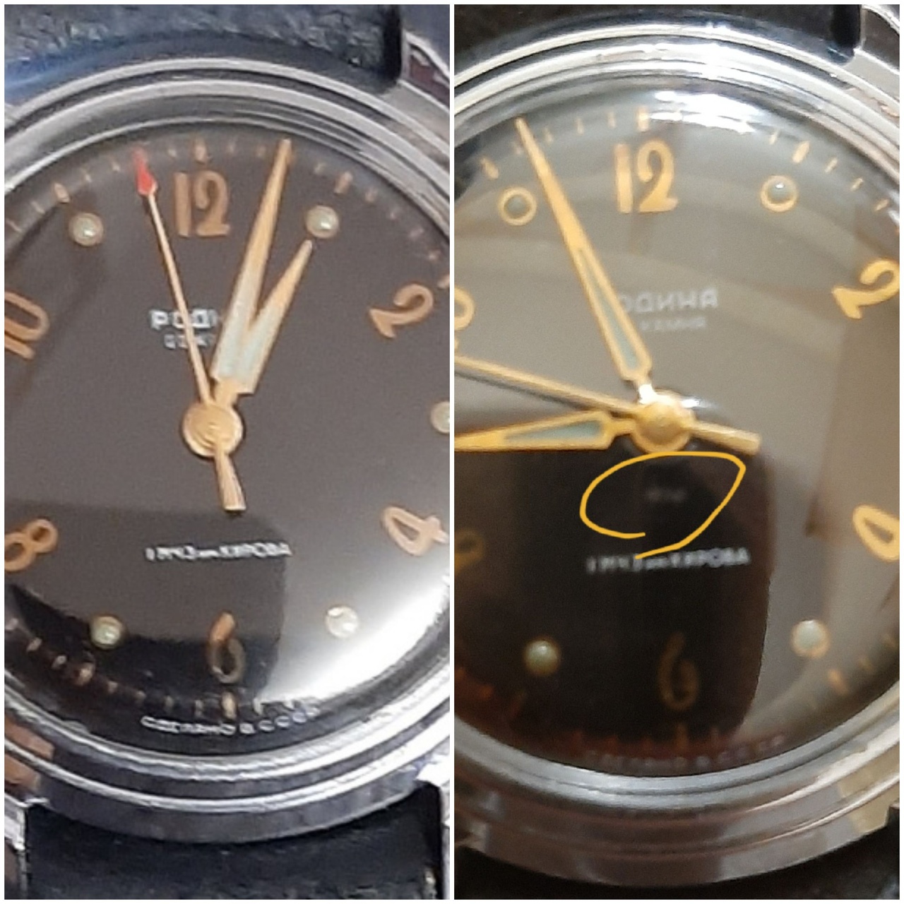 Вложение 3360469 В ранних темах про "Родину" на сайте отмечают тот самый "хруст". На моих часах он изначально был (поломка столбика автоподзавода, ... сомневаюсь, что она на это влияет), ручной завод стал ..."близок" к позднему варианту после обслуживания. Посему, ... возникли вопросы и на подциферблатном уровне. Если мои сомнения беспочвенны, то хотя бы здесь... я буду спокоен. Спасибо. ------- ДОБАВЛЕНО ЧЕРЕЗ 19 МИН -------- А по поводу "элиминировать", судите сами ... Меня уже даже "Cognac" не "берёт". Млин, я таких косяков, как "профан" и теоретик когда-то не допускал:( Вложение 3360493 |