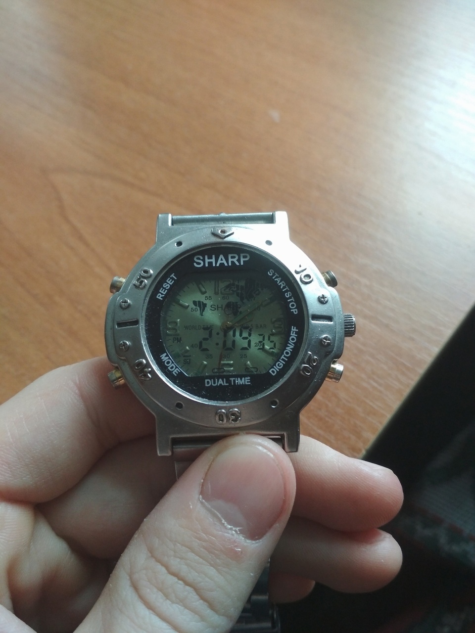 Это совсем не тот Sharp, который все знают - тут даже шрифт логотипа другой. :) Под этой маркой продаются самые дешевые часы и еще кое-какая мелкая белиберда. В США, как ни странно, такая продукция довольно часто встречается. Продается в тех же местах, что и Armitron, например. Основные покупатели: те, кому жалко денег на простейший Timex. Да и просто такое своеобразное паразитирование на всемирно известной марке. :D