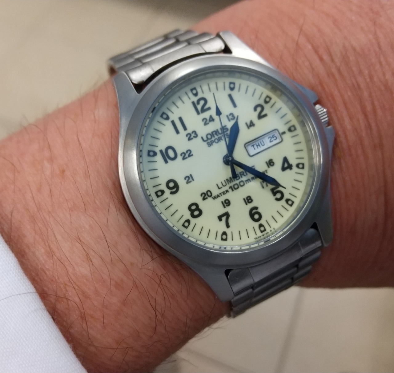 После достаточно муторных поисков Lorus Sport Lumibright был посажен на винтажный сатин-браслет(тоже от лоруса,но середины 80-х годов,спасибо мастеру Алексу),и часы приобрели совсем другой вид:)