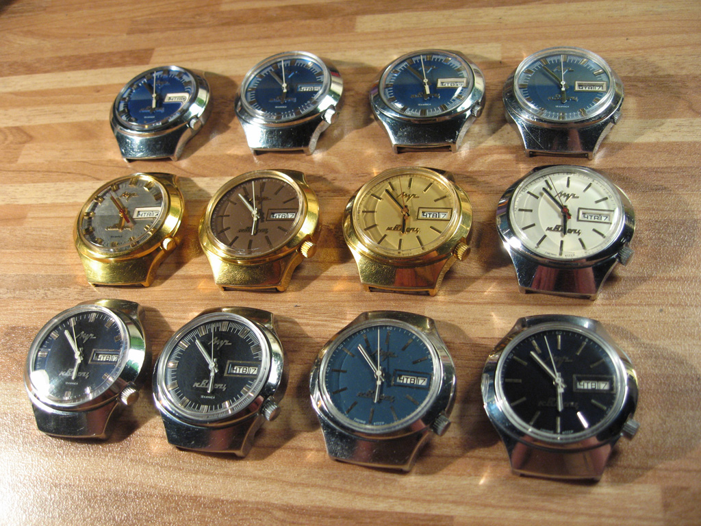 2-зелёный горизонтальный 3-тёмносиний вертикальный 4-синий матовый одноцветный светлый 5-синий "Хамелеон" 6-белый лаковый 7-синий гильоше 8-сиреневый вертикальный, ??? 9-коричневый(шоколадный) матовый AU 10-коричневый(шоколадный) лучёванный AU 11-серебристый горизонтальный AU 12-жёлтый лаковый AU 13 -белый матовый 14-тёмносиний вертикальный разметка, как в горизонтальном 15- браслетный хром 16- браслетный AU 17-настольный красный Олимпиада-80 Есть к чему стремиться... |