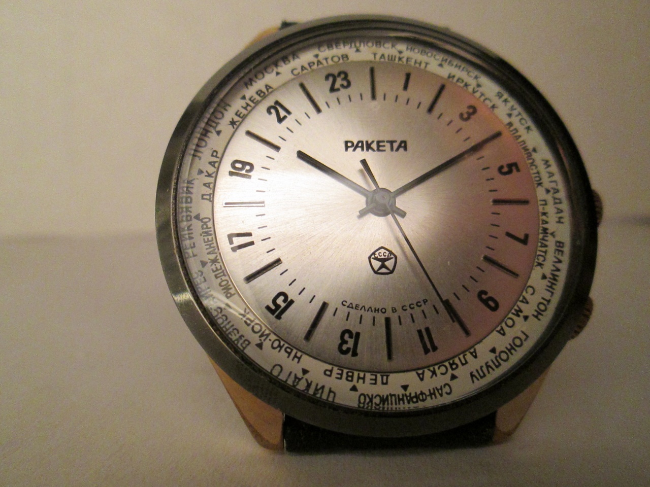 Вот и я стал счастливым обладателем 24-часовой ракеты на канонiчном 2623.Н SU Часы были куплены на молотке, пришли в среднем состоянии. Знакомыми часовщиками починены, пересажены в новый корпус из старых запасов, почищены и смазаны. Ремешок под них купил на ибее, аж в Южной Корее. Одел на руку. Расплылся в улыбке. Доволен. Прошу прощения за качество фото, снимал мобильником. Приличные сделаю к концу недели. |