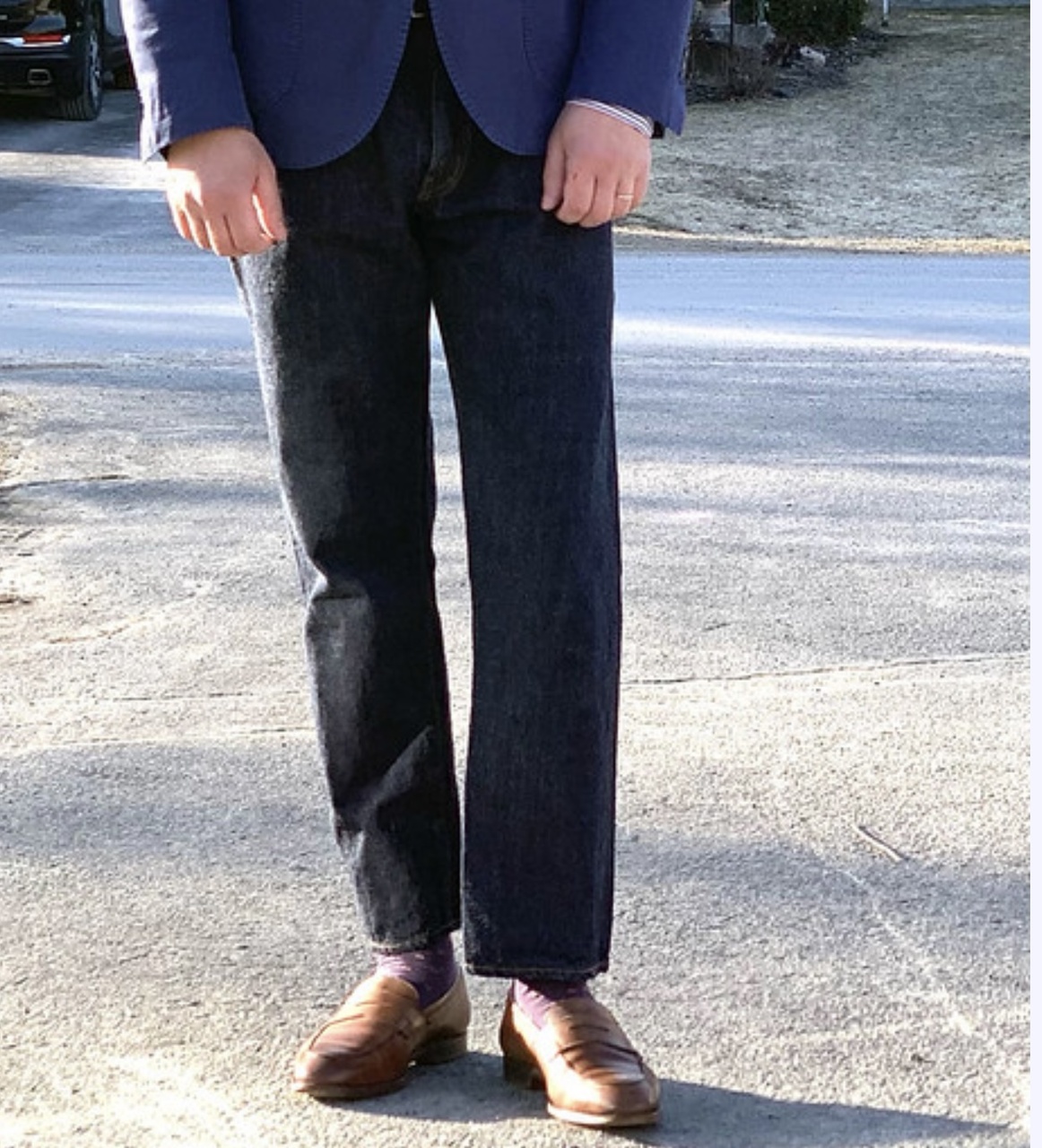 Здесь , просто клоунское сочетание укорочённого пиджака и подстреленных штанин, ещё и с лоферами. Видимо, Серж, «Не для тебя придёт весна, не для тебя Дон разольется». Вложение 3185936