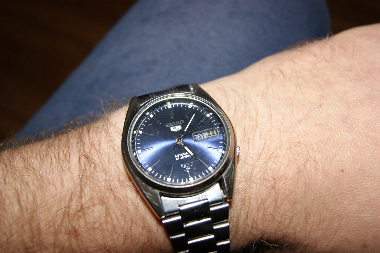 Вот. купил сегодня за 10 долларов на барахолке. НИ царапины! Прикол - на задней крышке - американский четвертак фор гуд лак. На стекле с внутренней стороны вибит лого " Seiko 5". На фото видно. Сколько я их перевидал, и подделки, и ориджинал, остановился на этих, шоб на верочку оригинальные.