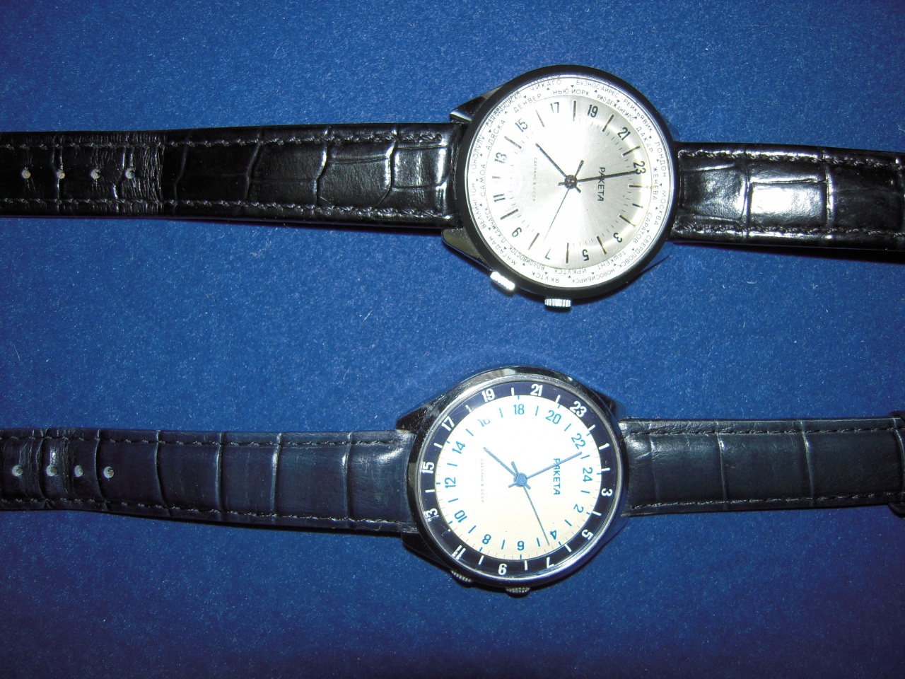 Синие первые, принято ошибочно называть вахтенными, но там измерительная шкала второго часового пояса, а не вахты. Для вахт есть другая шкала с секторами. Вторые с городами не со вторым часовым поясом, а с мировым временем, что еще называют GMT, когда можно определить сколько времени в каждом отдельном городе по отношению к текущему. Как-то так :) |