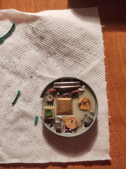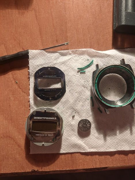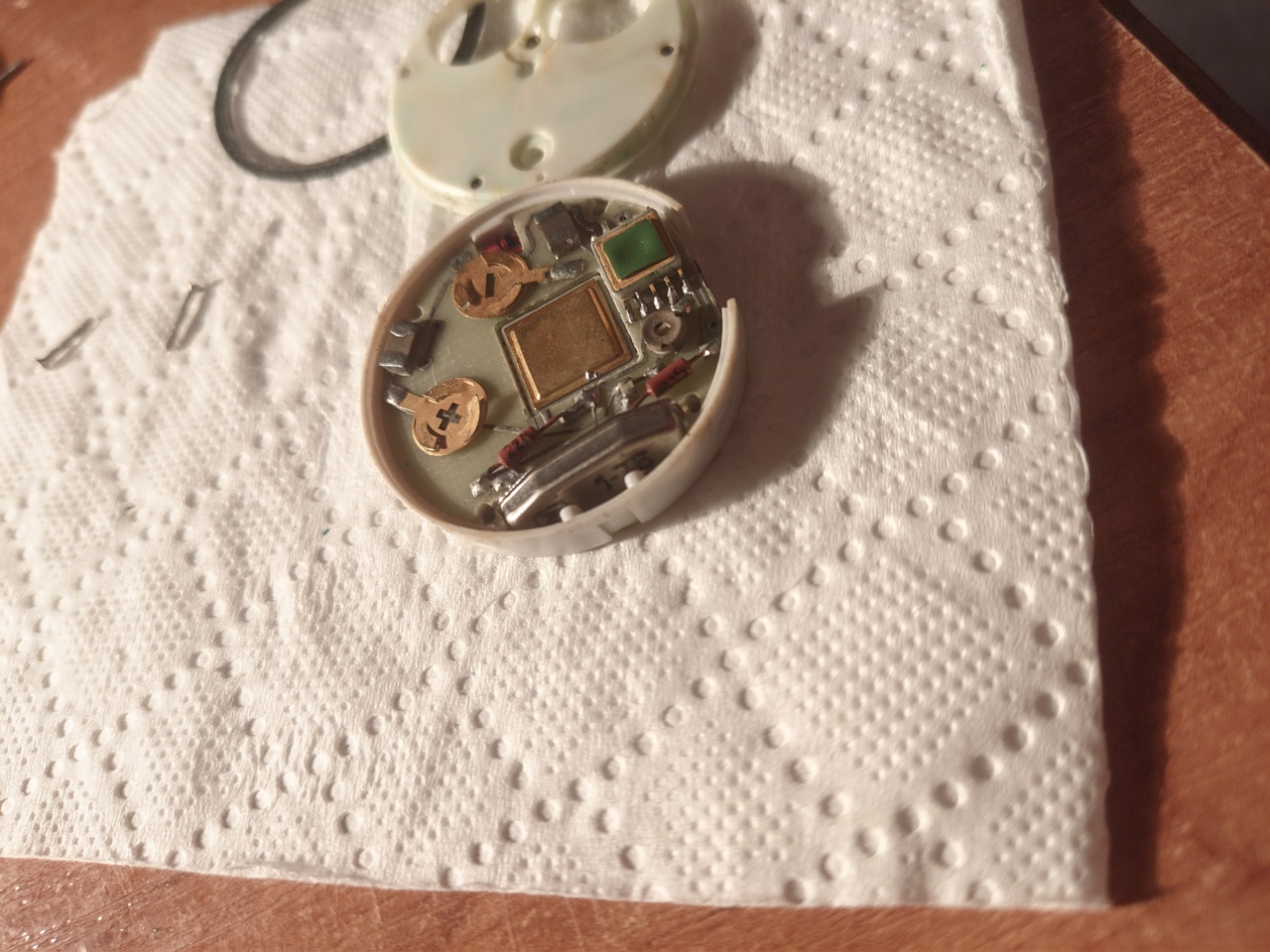 При вскрытии обнаружил 2 батарейки типа РЦ 08.81, испугался, но шариков ртути не обнаружил, только соль. Получается, в часы не лазили примерно с 81-82 годов. Затем самое интересное, при разборке, оказалось, что вместо прижима используется старая очень ранняя маска где в слове электроника, буква "О" выполнена в виде электрона. Сама маска видно что выгорела по кругу по форме стекла. Очень интересно, что по кварцу часы 78 года, а по дисплею 79 года. Здесь напрашивается вопрос, неужели в мастерских делали такие колеты еще тогда, в 81-82? Либо же часы ранние, а в них были заменены и плата, индикатор и обойма? Либо же, в мастерской, за неимением прижимных рамок, ставили ранние маски 75-76 годов. Самое забавное, что после чистки и платы часы спокойно завелись. Пару раз менял батарейки, из-за того, что дисплей и площадка с резинками очень делали мозги. Затем сильно расстроился когда в очередной раз менял батарейки, а часы привычно не ожили. Думал кранты чипу, делителю, пауку, и т.д. Затем еще раз пересобрал, результат тот же. Где то здесь вычитал, что часы иногда нужно собрать с батарейками, и оставить в покое, есть вероятность что они заведутся. Так я и сделал, по итогу, спустя 30 минут лежания, часы ожили индикация и ход в порядке. Ранее менял кварц. Сейчас стоит темно фиолетовая маска с черными надписями, смотрится хорошо :) Вложение 3898273 Вложение 3898274 Вложение 3898275 Вложение 3898276 Вложение 3898277 Вложение 3898280 |
