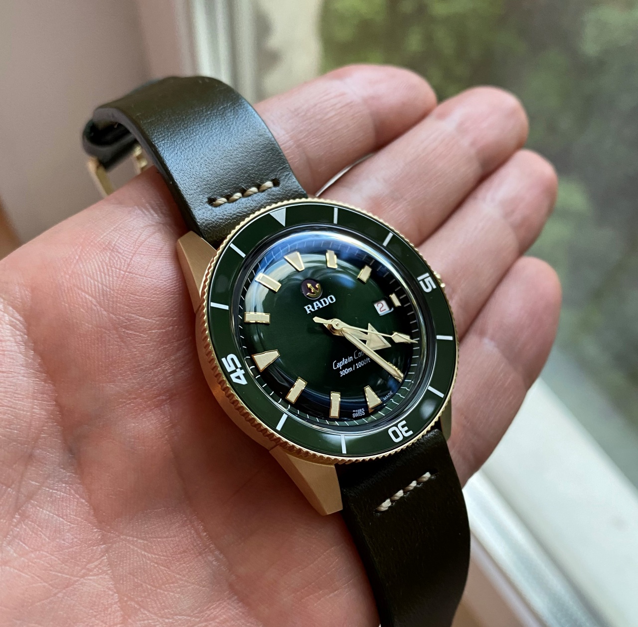 На днях пришли часы, заказанные для форумчанина, на ходу сделал несколько живых фото зеленых в бронзe (R32504315) :