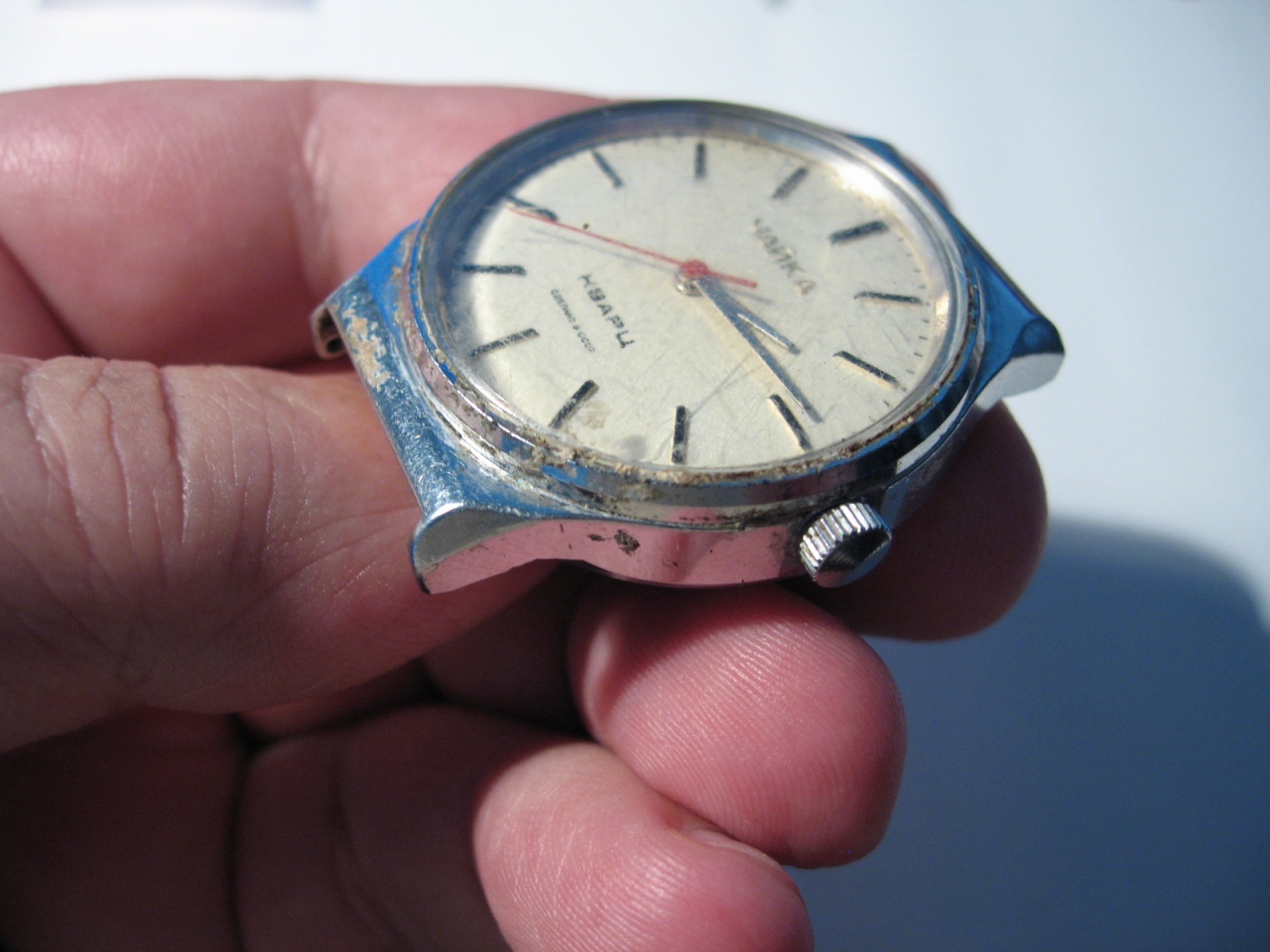 Получил, открыл - а там машинка Луч... Из приятного - работает. Что же в этом корпусе должно стоять? Циферблат вроде как родной стоит... :confused: |
