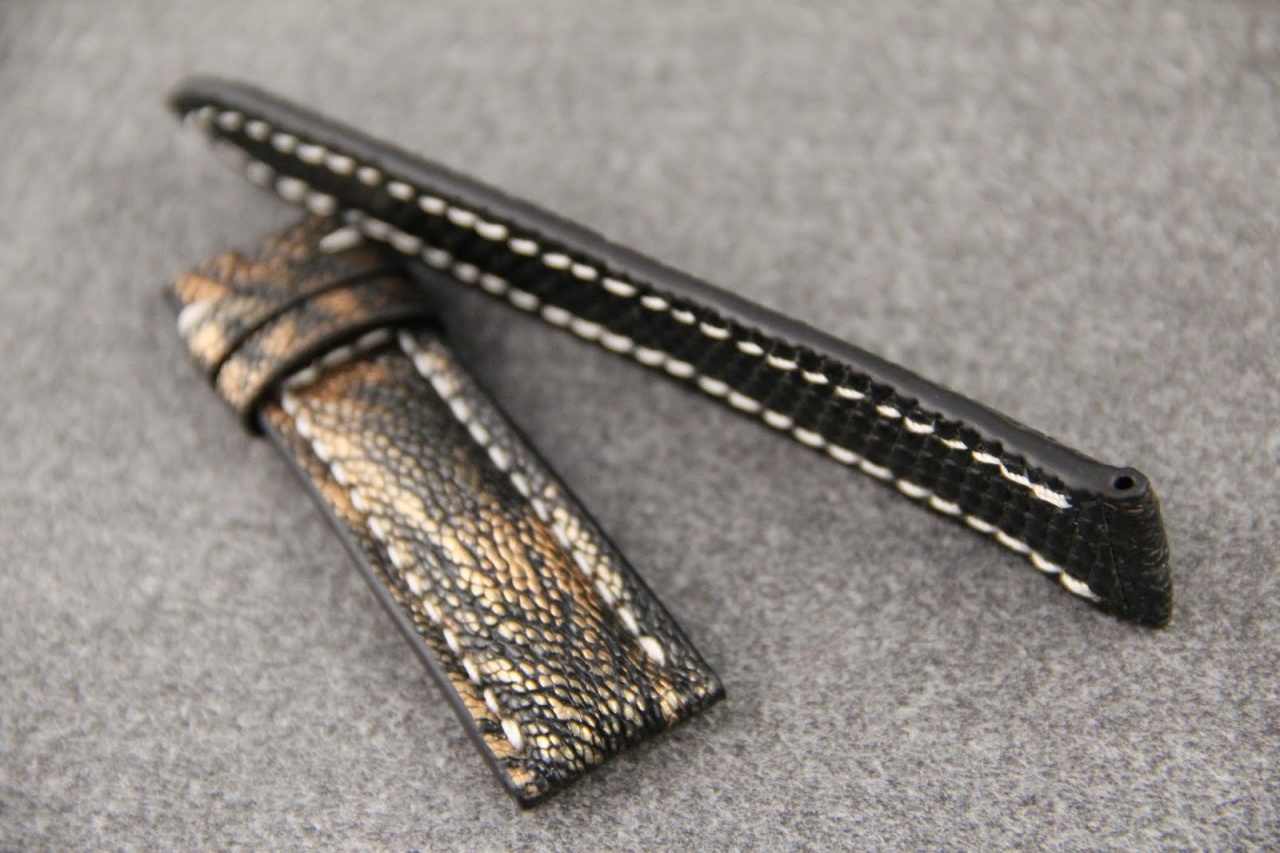 Ремешок для часов Roger Dubuis Acqua Mare. Верх ремешка сделан из кожи акулы. Подкладка ремешка из кожи теленка. Ремешок прошит вручную.