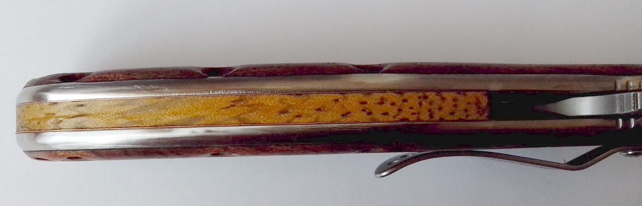 Benchmade 520 Presidio. Накладки рукояти, правда, из алюминиевого сплава, но рама стальная. Крепкий, вёрткий, ухватистый с клином грамотной геометрии и адекватной сталью.