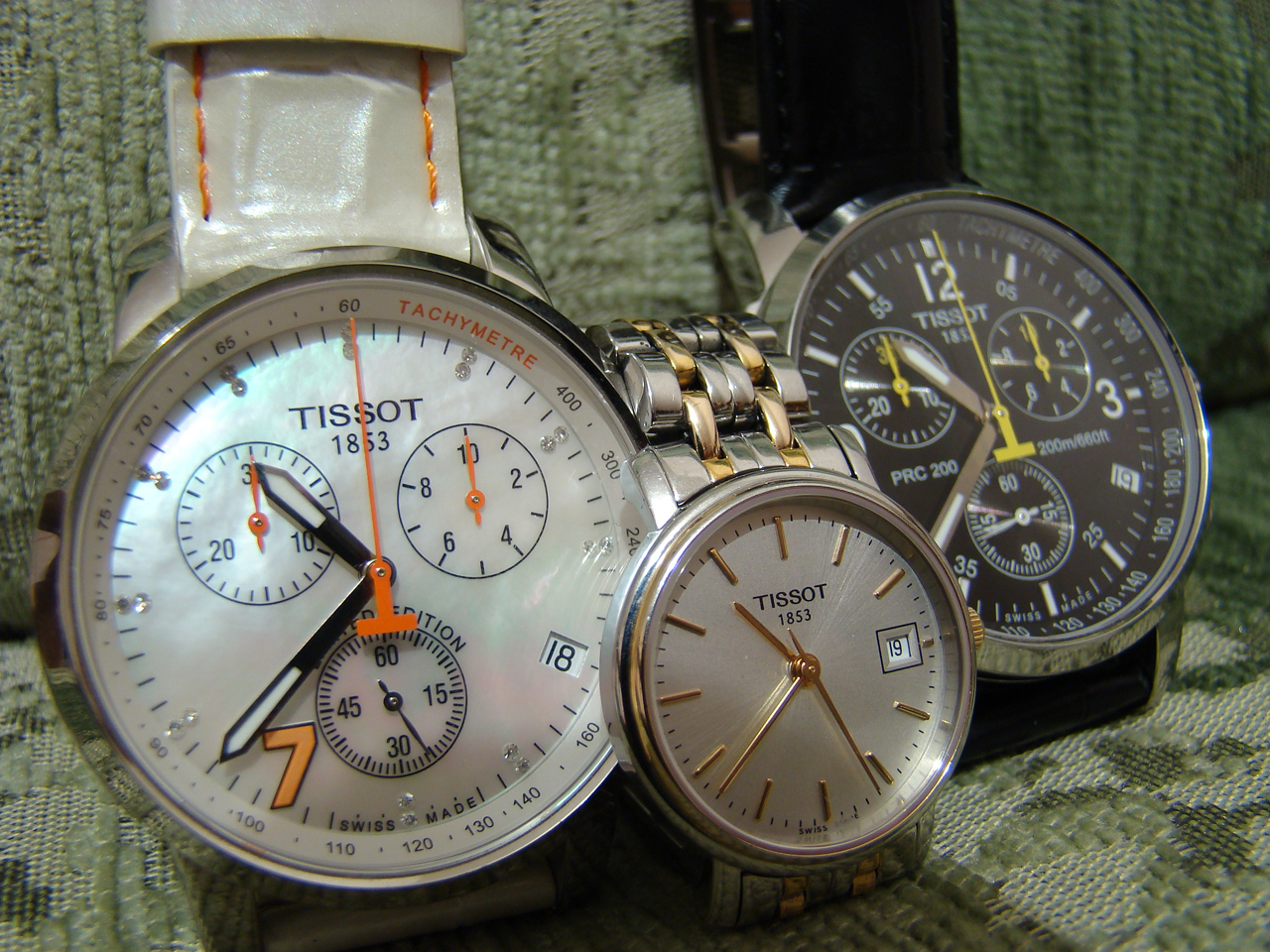 Всем добрый вечер.Давно любуюсь часами форумчан. Ещё дольше вынашивал идею обзавестись Тиссо.Хоть и говорят, что это часы так себе по столько поскольку, но блин манят!Ну конечно опробовал на любимой Вложение 420182Хорошо!Понравились!Casio забросила(ну может старенькие просто стали) Через пару лет и я прикупил себе простенькие PRC200 Вложение 420187 Вложение 420188 ну вроде как по случаю ДР. А потом думаю, а чё я один буду ходить в PRC200 и доукомплектовал их лимитками Вложение 420196 Вложение 420197 Вложение 420198 понятно для кого.Все часами довольны, ну пусть механизм простенький, душа то рада!Вложение 420203 Вложение 420204