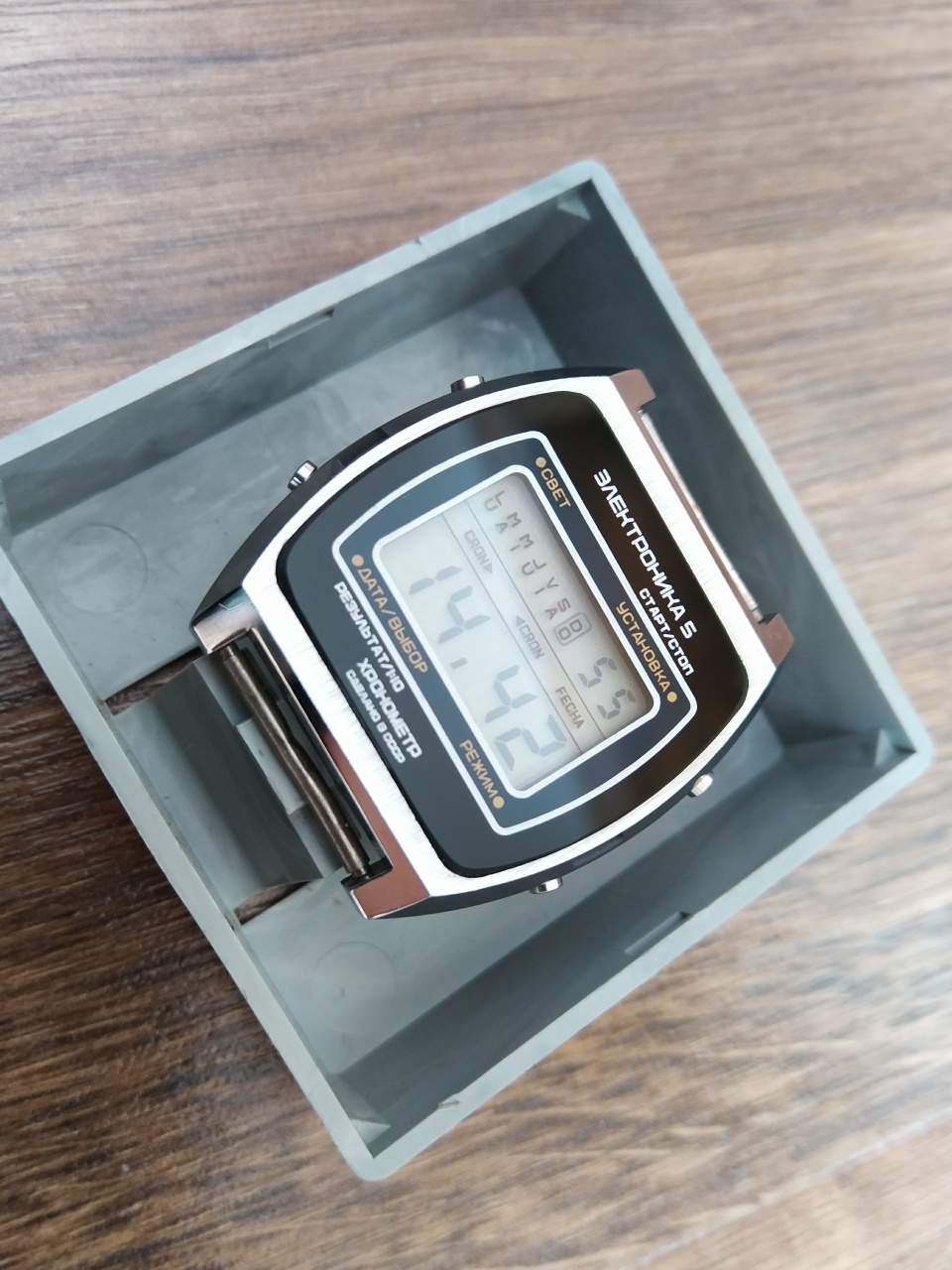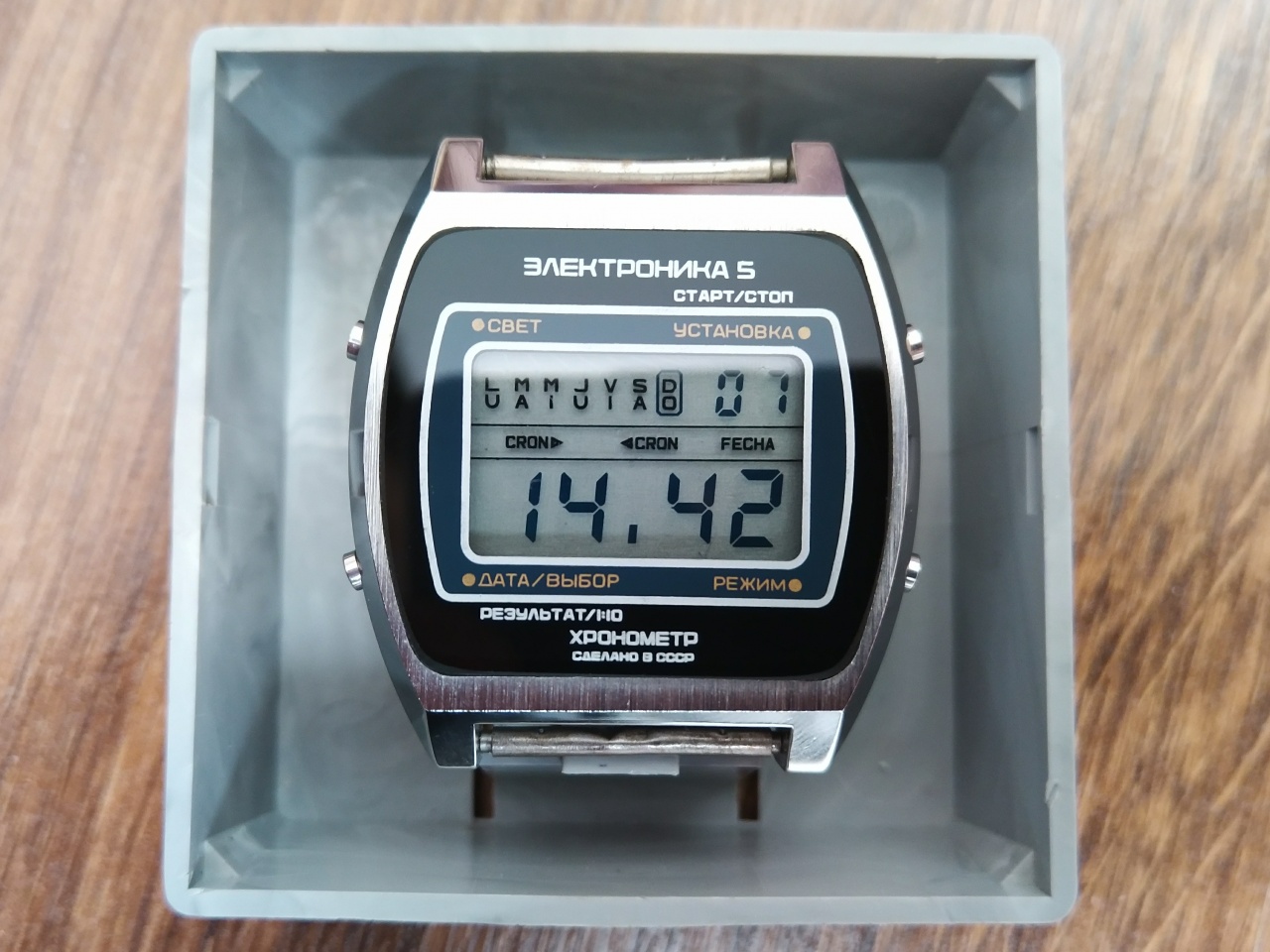 Электронными часами интересуюсь не так давно, года с 2015, так что профессионалом в этом деле не являюсь. Но хочу с вами поделиться историей, как наконец-то и мне подвернулась удача. Давно хотел себе такие часы в коллекцию, но только сейчас в моей коллекции появилась Электроника 5-207. Попались случайно на барахолке в коробочке за смешную сумму (75 грн/150 руб), но нерабочие.