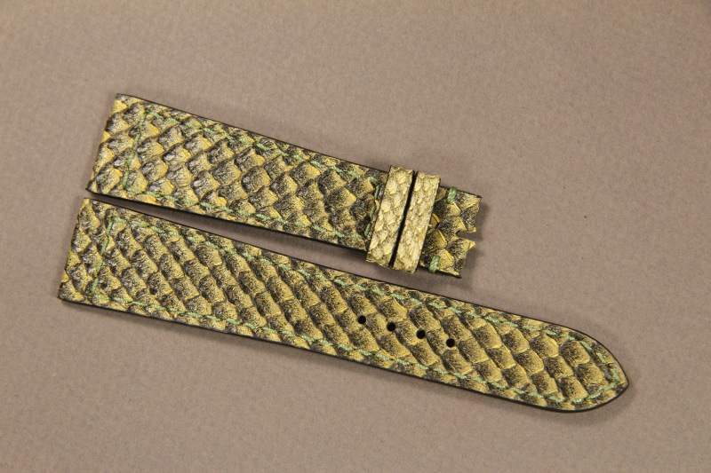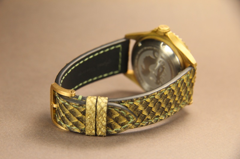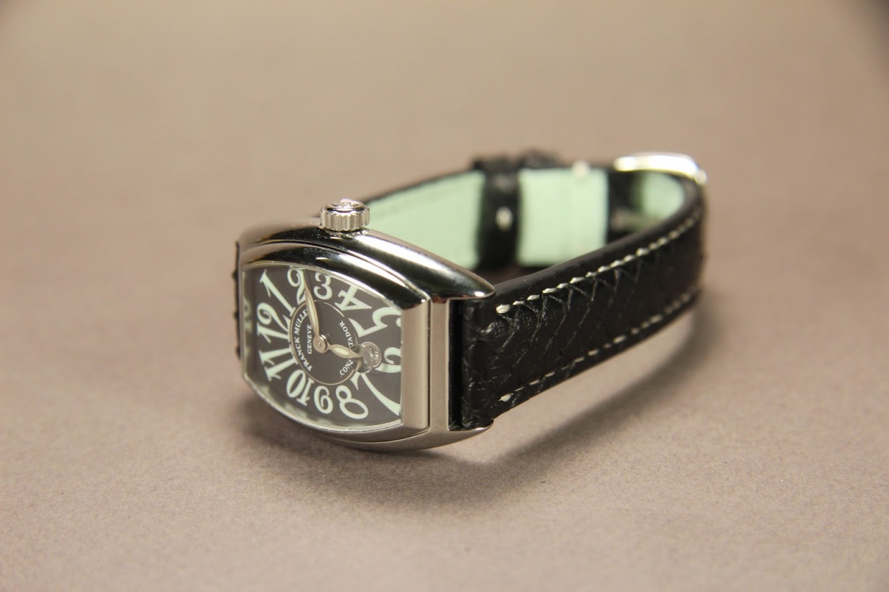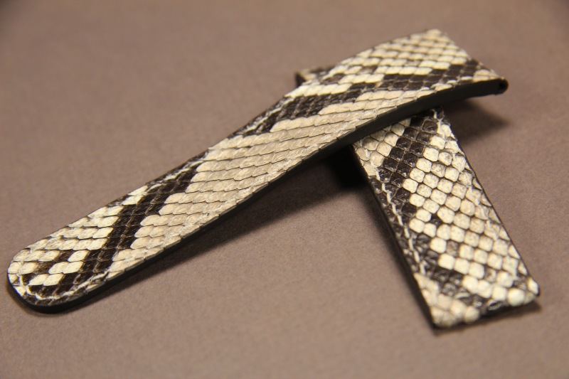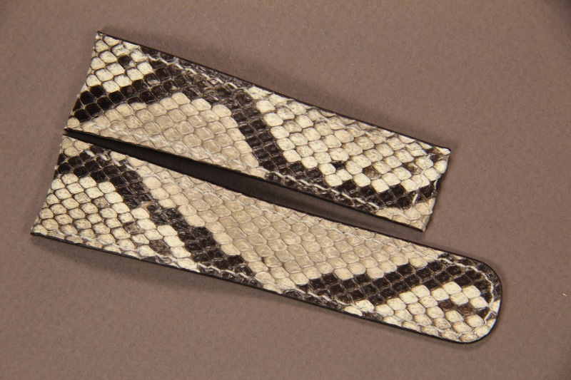 Ремень для часов Franck Muller Conquistador. Верх ремня сделан из кожи питона. Подкладка ремня из кожи теленка. Ремень прошит вручную.
