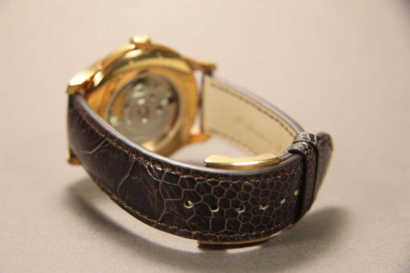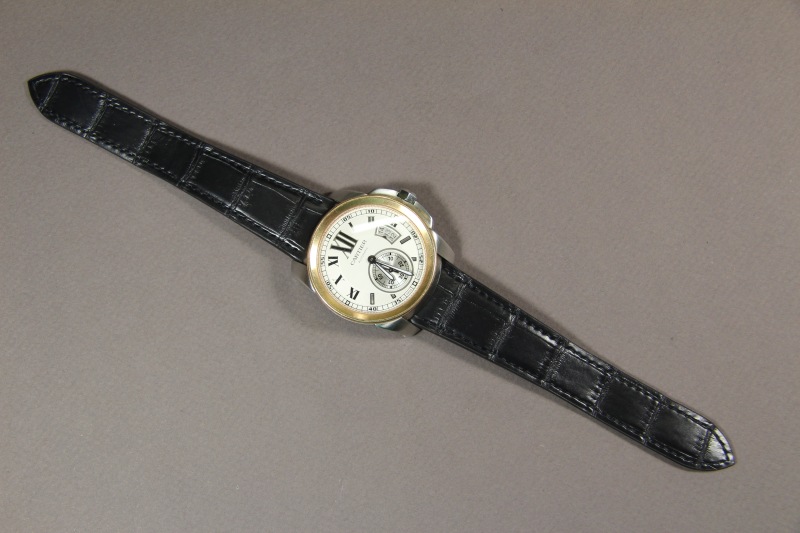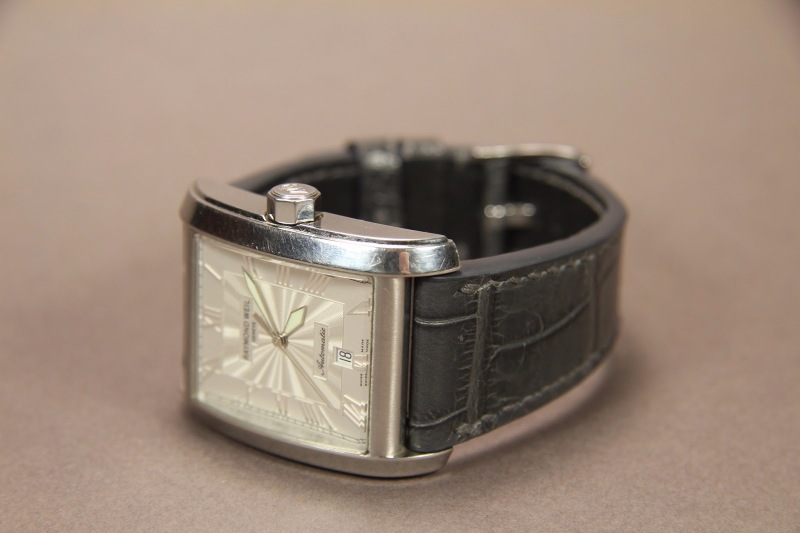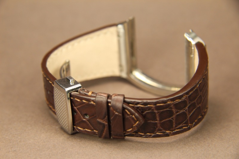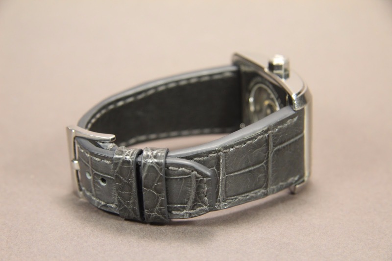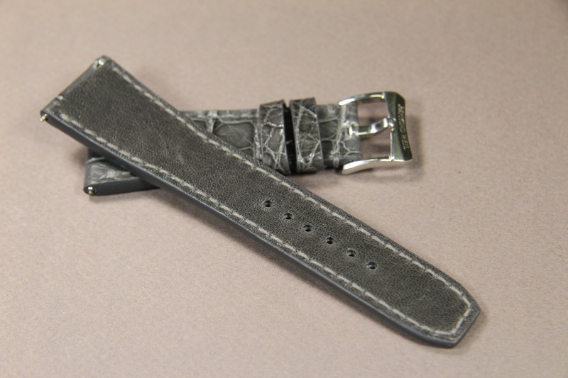 Ремень для часов Raymond Weil. Верх ремня сделан из кожи аллигатора. Подкладка ремня из кожи теленка. Ремень прошит вручную.