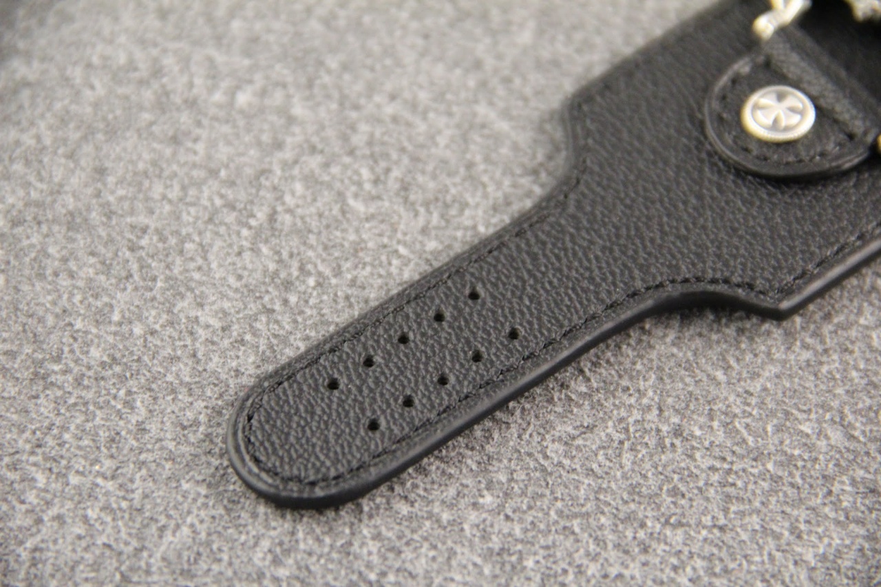Среди наших друзей появилось новое имя Saint Bones by Basta. Это первый ремешок из серии моно ремешков для браслета Inquisitor от Saint Bones. Верх ремешка сделан из кожи козы. Кожа произведена на заводе Alran во Франции. Подкладка ремешка из кожи теленка. Ремешок прошит вручную.