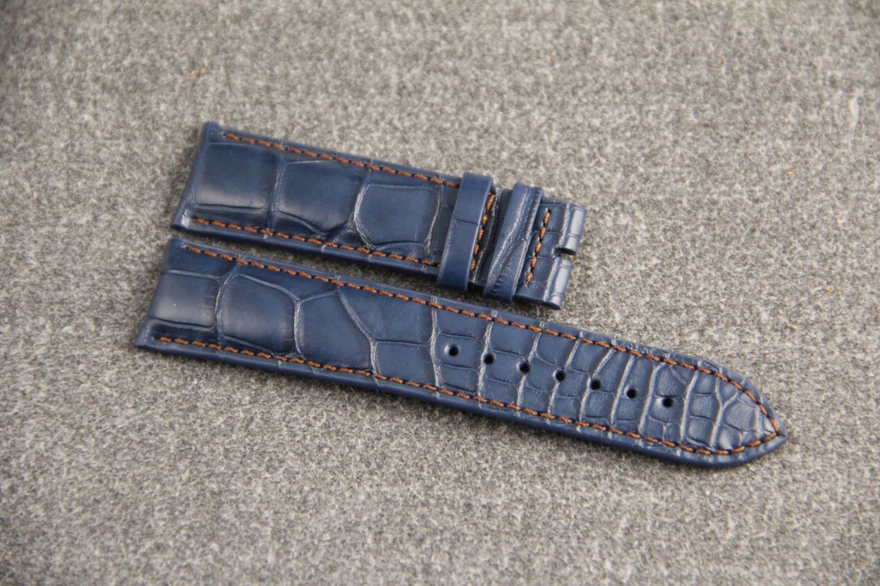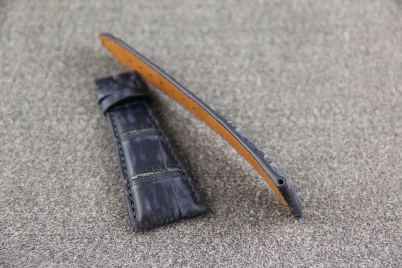 Ремешок для часов Fortis Blue Horizon Chronograph. Верх ремешка сделан из кожи крокодила. Подкладка ремешка из кожи теленка. Перенос вставок в основание ремешка. Ремешок прошит вручную.