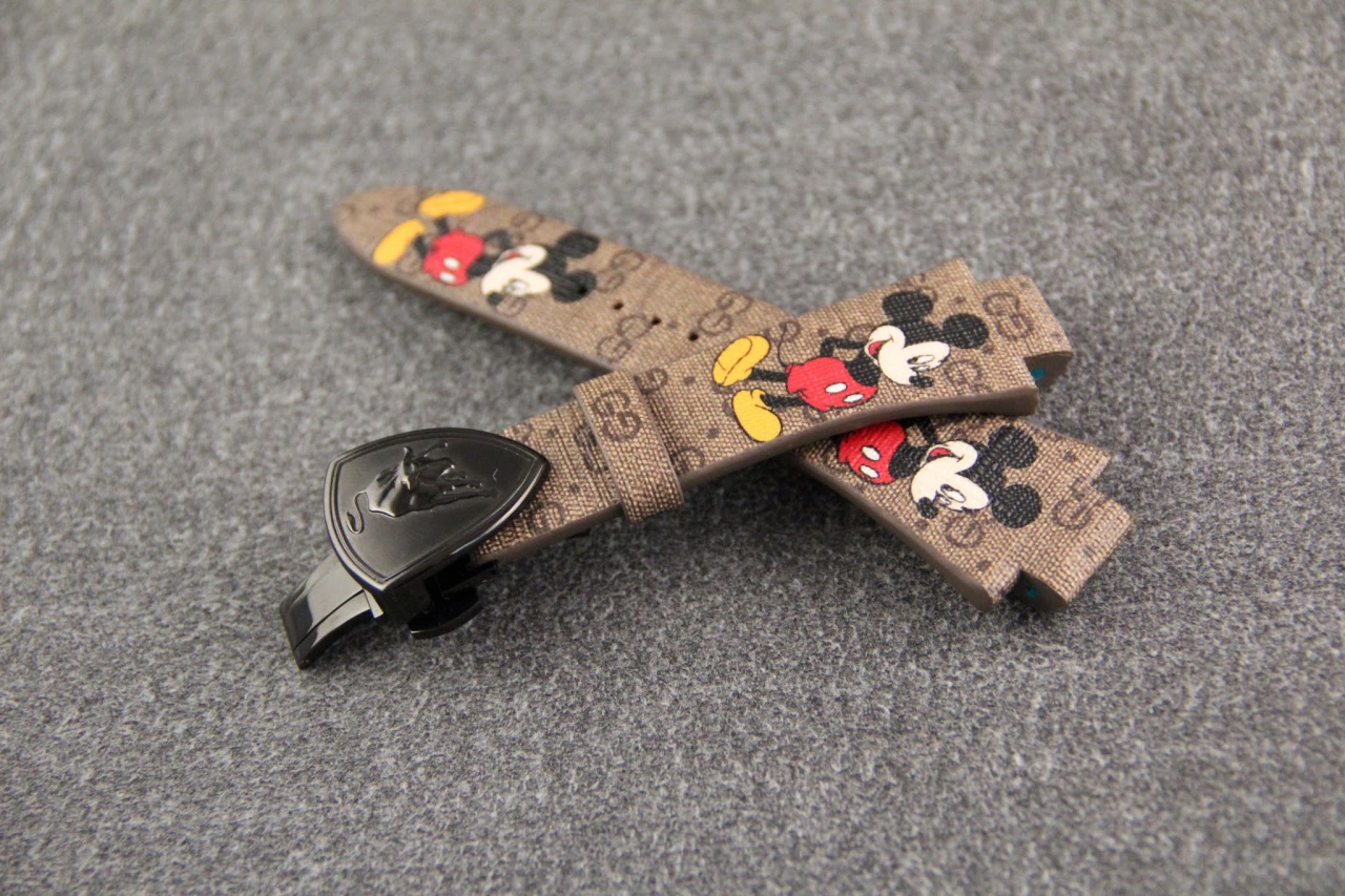 Ремешок для часов Apple Watch. Верх ремешка сделан из текстиля Gucci. Подкладка ремешка из кожи теленка выделки Dollaro.