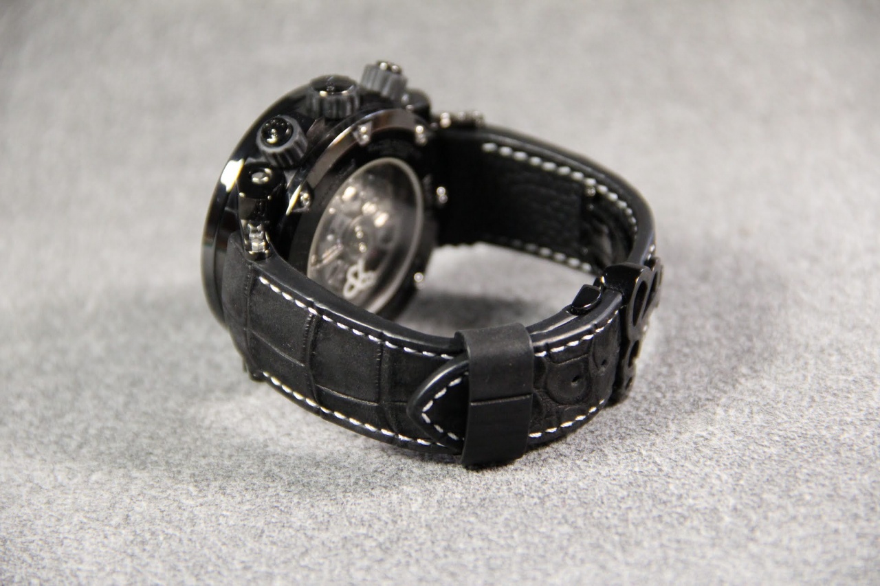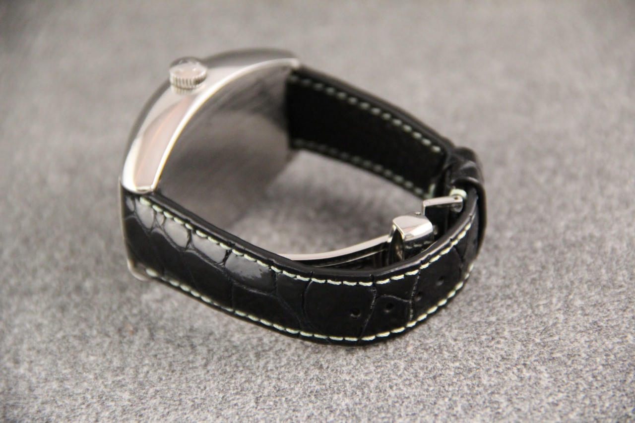 Ремешок для часов Franck Muller Casablanca. Верх ремешка сделан из кожи крокодила. Подкладка ремешка из кожи теленка Dollar. Ремешок прошит вручную ниткой того же оттенка, что и цифры на циферблате.