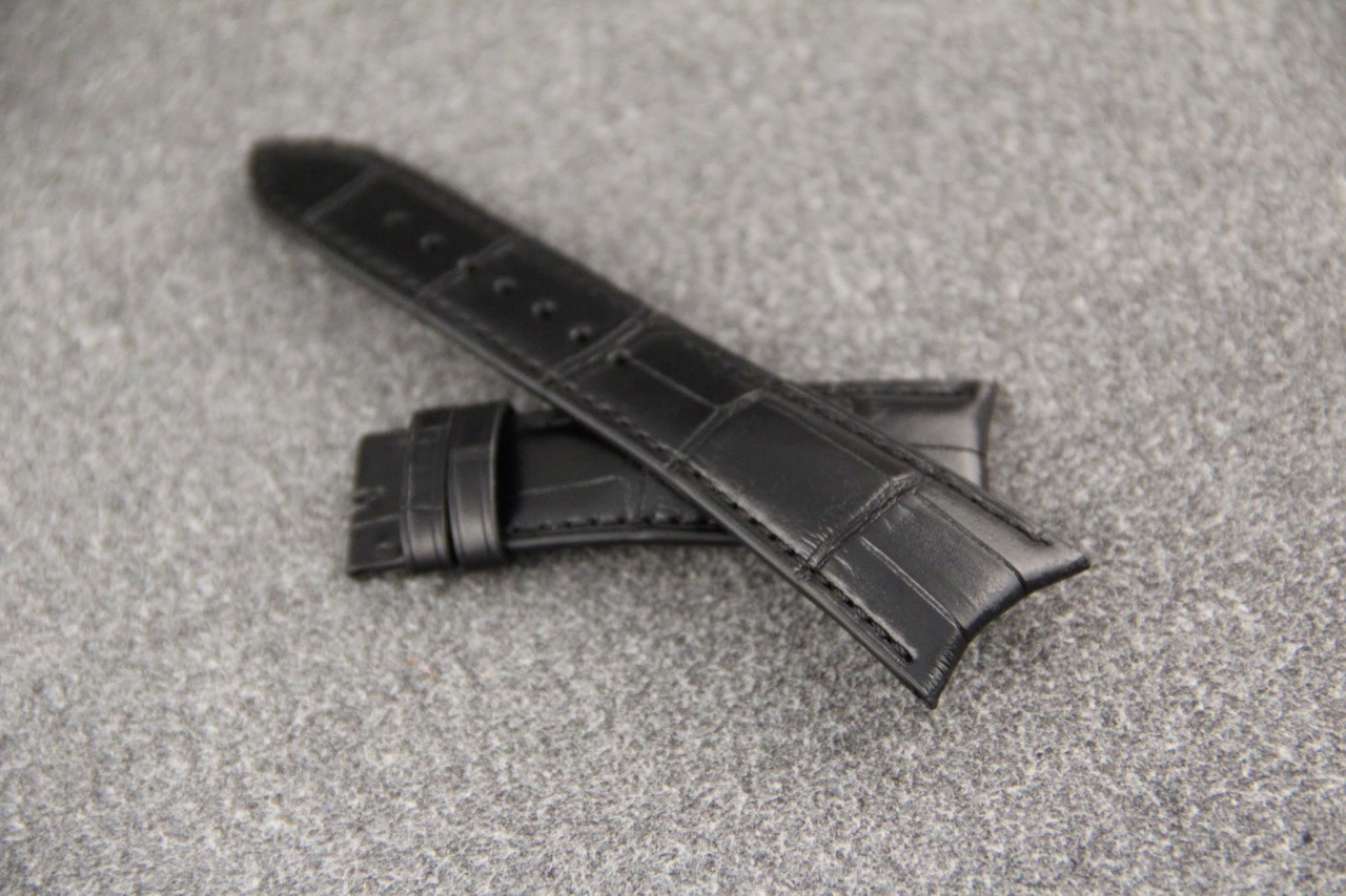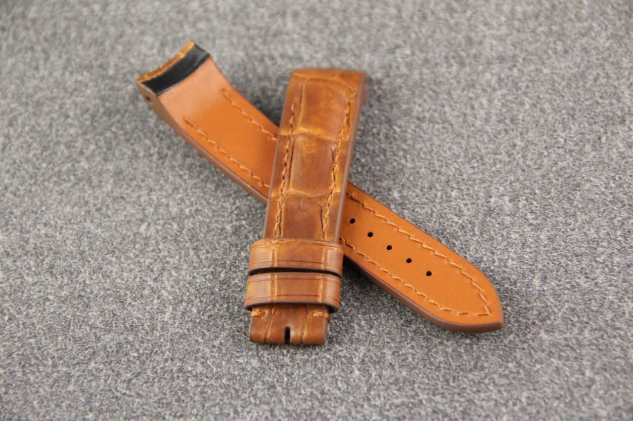 Ремешок для часов Baume & Mercier. Верх ремешка сделан из кожи крокодила. Подкладка ремешка из кожи теленка. Перенос вставок в основание ремешка. Ремешок прошит вручную.