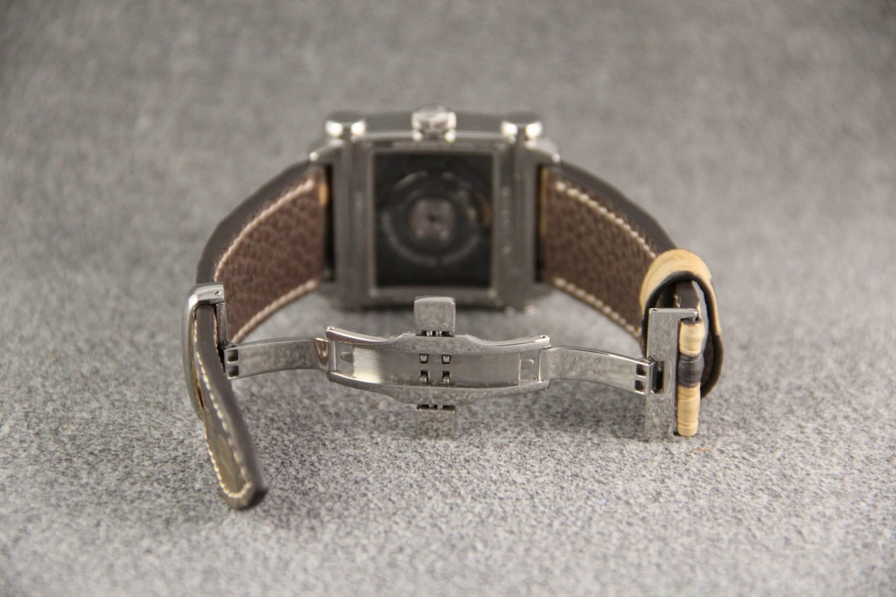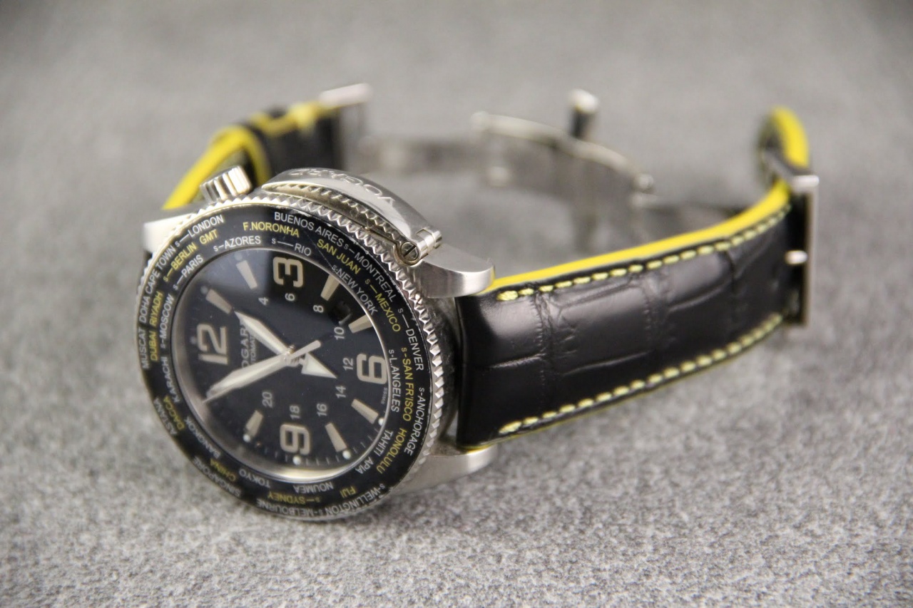 Ремешок для часов Graham Silverstone Time Zone. Верх ремешка сделан из кожи теленка. Подкладка ремешка из кожи теленка Dollaro. Ремешок прошит вручную.