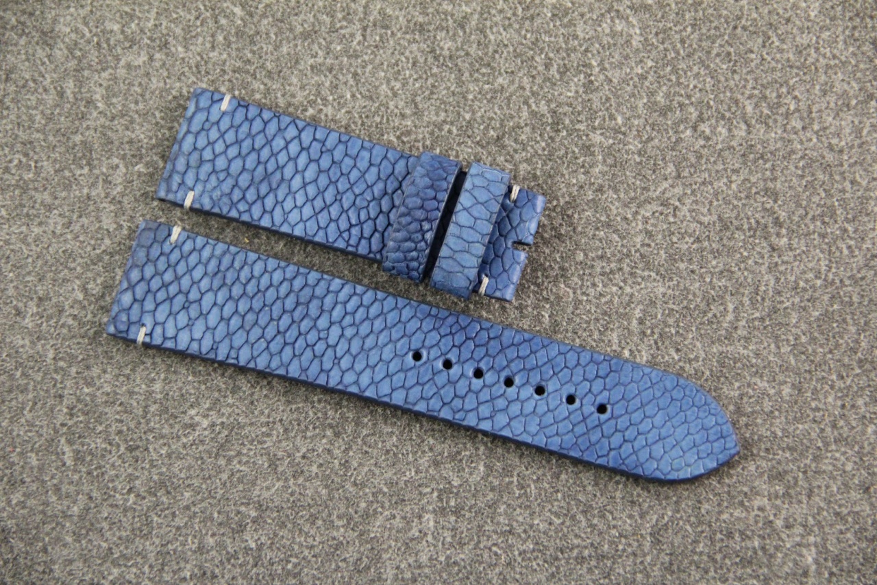 Ремешок для часов из кожи с ноги страуса. Подкладка ремешка из кожи теленка. Ремешок прошит вручную.
