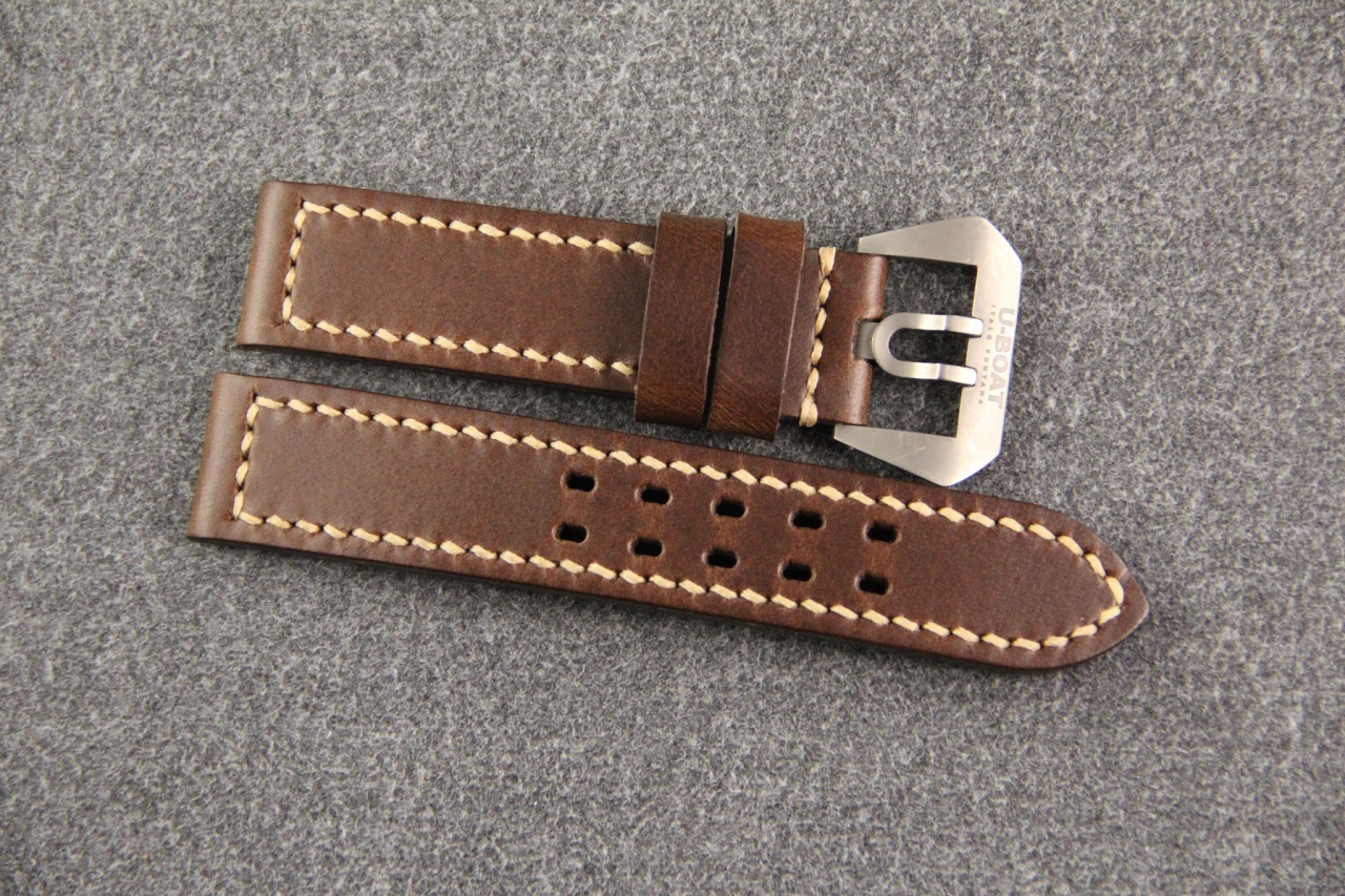 Ремешок для часов U-BOAT U42. Верх ремешка сделан из кожи теленка "Buttero". Кожа произведена на заводе Conceria Walpier - Тоскана, Италия. Подкладка ремешка из кожи теленка. Ремешок прошит вручную.