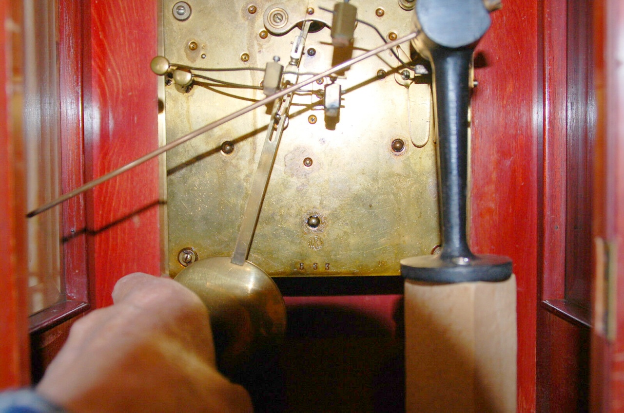 Со слов продавца серийный номер LFS 5 3 3. Завод на 7 дней. К сожалению часы имеют проблемы с гонгами. На фото с боку они вроде есть и при этом стержневые, а мне кажется должен быть спиральные , а на фото сзади гонгов не видно и не понятно как они крепятся. Может кто подскажет? |