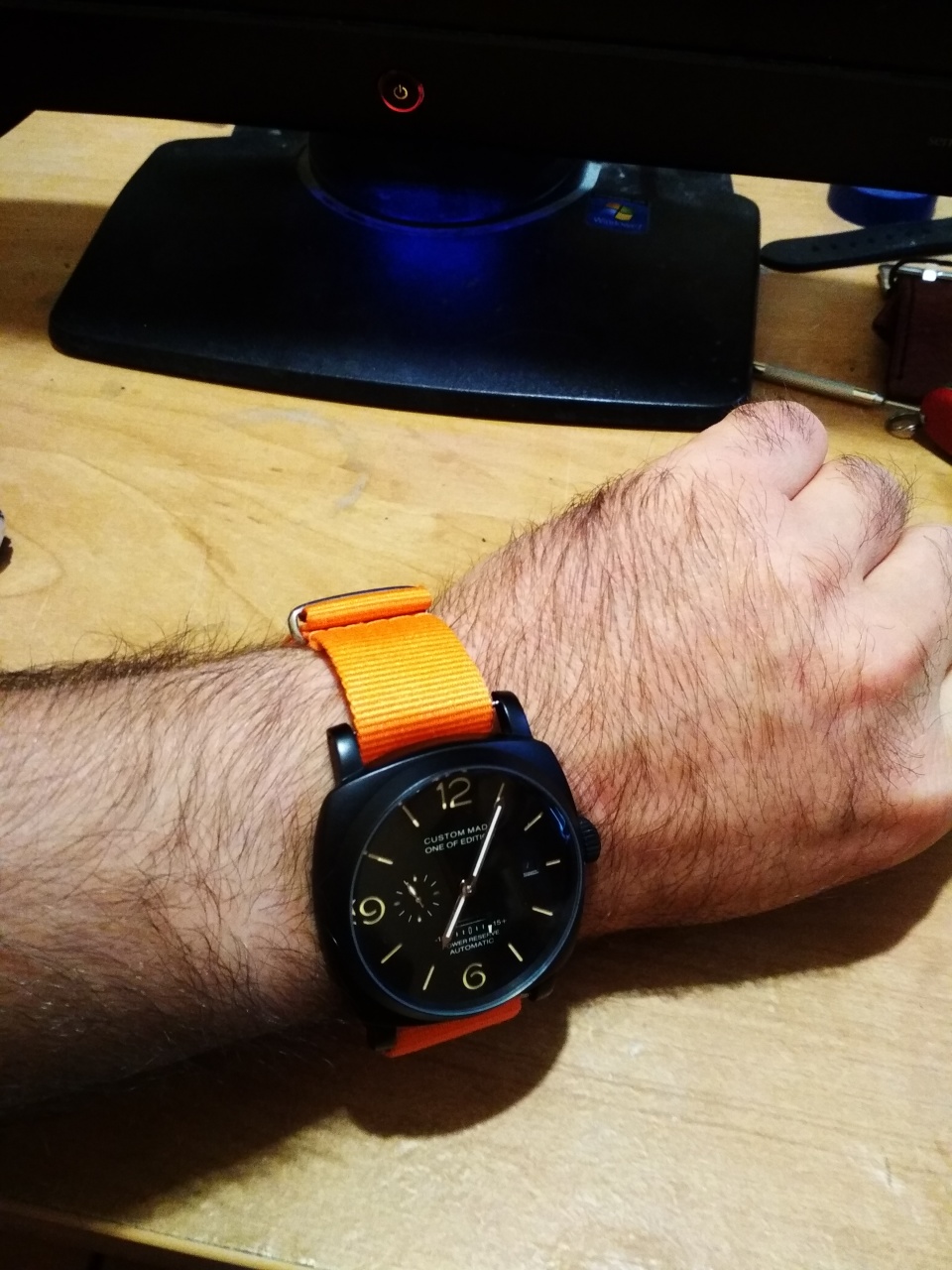 Пришли два НАТО ремешка из одного магазина на Али по 140р штука. Но если триколор:) вполне приличного качества, то оранжевый мне не понравился менее рельефный, если можно так сказать, и есть огрехи в структуре ткани.