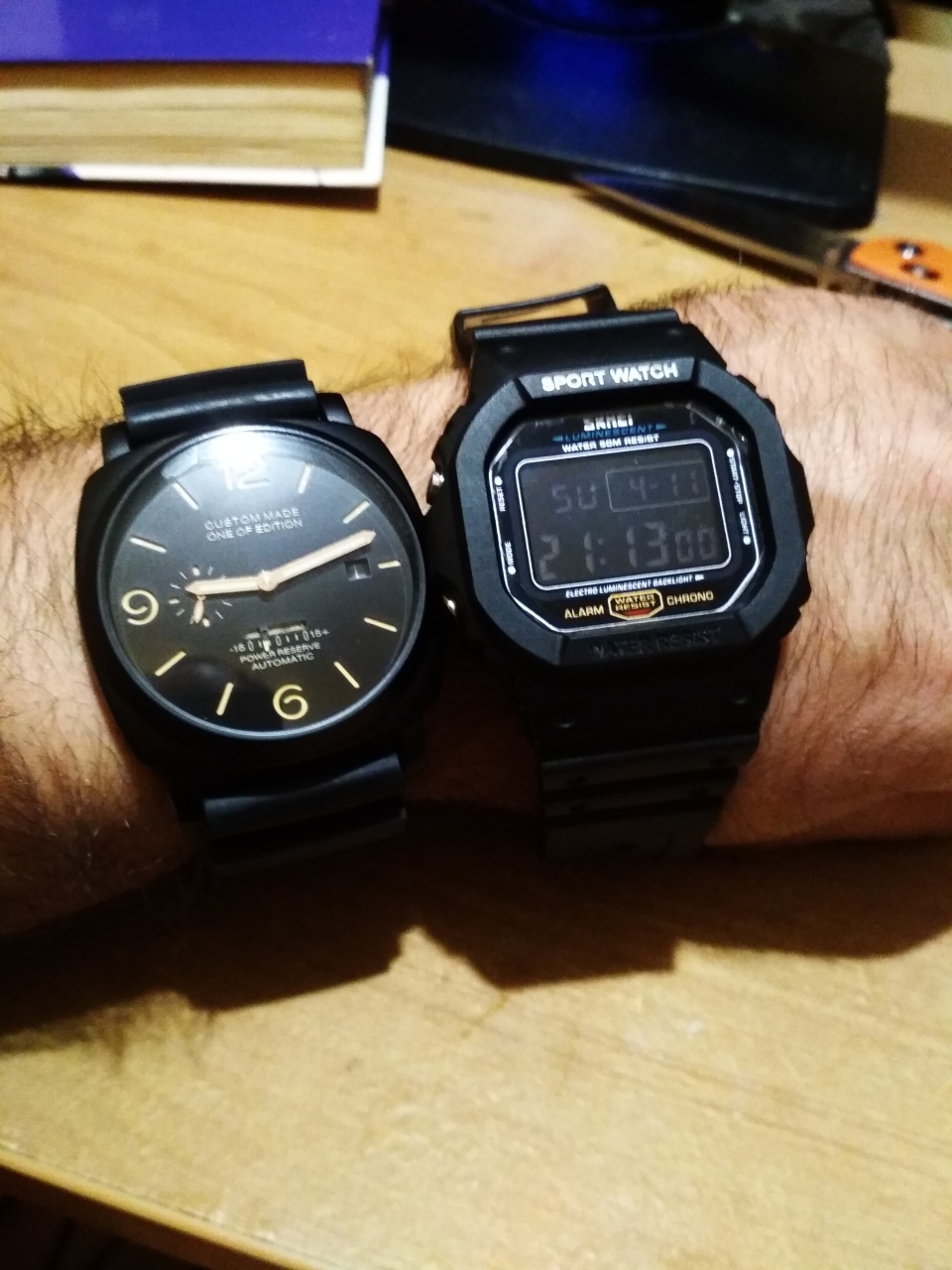 За 10 суток ушли вперёд на 30-40 секунд, что отлично, а ведь для устаканивания меха обычно дают пару месяцев. Стрелки не выставлял сегодня на точное время, буду наблюдать дальше. На ночь клал боком на заводную головку, теперь стал класть горизонтально, фейсом вверх - посмотрим, как себя поведут. Заказал классическую баклю у продавца HENGRC Official Store на Али (см. фото), но мелкие вещи без трекинга обычно идут долго. Определил текущую баклю как панераевскую pre-v -- а ещё в середине августа слово "Панерай" было для меня незнакомо. :) Делаю прогресс! Часами очень доволен, всё нравится. |