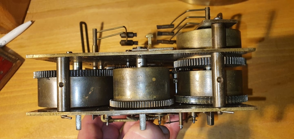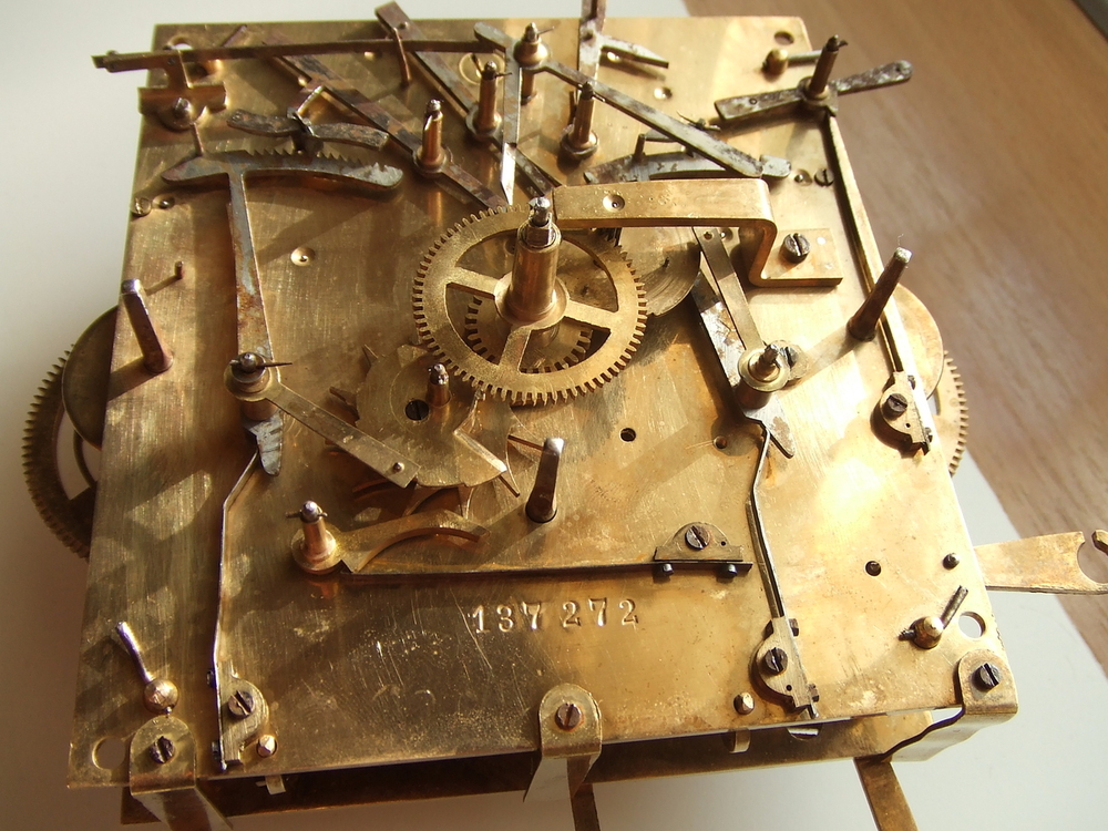Я думаю, это всё-таки Franke. К сожалению, фото точно такого же механизма у меня нет. В этот период у Franke много четвертных (жильных) механизмов или механизмов с пружинным приводом. Единственный механизм с таким же гонгом сделан до 1-ой Мировой войны: Вложение 3362243 Вложение 3362244 Вложение 3362245 Вложение 3362246 Вложение 3362247 Вложение 3362248 Вложение 3362249 В военный период механизмы выпускались на стальных платинах: Вложение 3362260 Вложение 3362261 Вложение 3362262 Вложение 3362263 Вложение 3362264 Почему нет серийного номера объяснить не могу. Изначально механизмы этого производителя имели серийный номер на задней платине, на передней стояли последние три цифры номера; затем все цифры перекочевали на переднюю платину. Это изменение произошло между номерами 71_064 и 73_691: Вложение 3362270 Вложение 3362272 Вложение 3362271 |