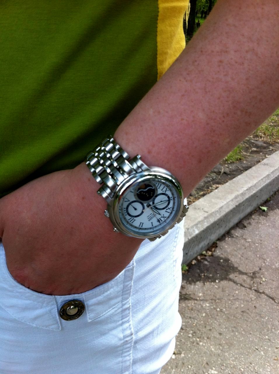 Наконец сделал фото на руке. Правда рука не моя, а жены. И часы приобретались для нее.