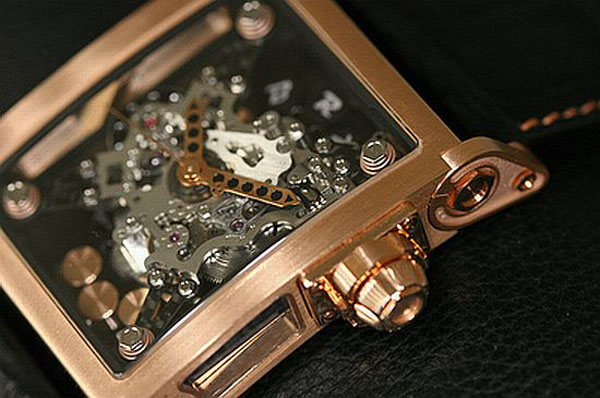 Бренд B.R.M (Bernard Richards Manufacture) принадлежит экс-гонщику, любителю высоких скоростей Бернарду Ричардсу (Франция), который на сегодняшний день является чуть ли не последним независимым часовщиком в Старом Свете. Его работы всегда обладают вызывающим внешним видом, олицетворяющим скорость, драйв, экстрим. Часы Birotor® стали результатом 30-ти месяцев кропотливой работы часового мастера. Крайне сложный часовой «скелетонированный» механизм заключён в прямоугольную рамку (40 на 48 мм) и полностью виден под идеально прозрачным сапфировым стеклом. Закреплён механизм четырьмя карбоновыми пластинами на специальных конических пружинах, которые также служат для поглощения вибраций. Хотя на выставке Baselworld 2013 часы BRM Birotor условно были отнесены к разряду «механических», они всё же имеют и функцию полуавтоматического подзавода. Работу механизма обеспечивают керамические подшипники и два фирменных ротора с танталовыми грузами красного или золтистого цвета, выделяющимися на фоне механизма. Часы Бернарда Ричардса имеют облегчённые мосты из карбонового волокна и биполярную временную систему с двойными коронками. А рубины/сапфиры с дополнительным гироскопическим эффектом, которые гармонично вписываются в механизм часов, только подчёркивают высокий статус этого аксессуара. В целом, часы выглядят достаточно агрессивно и даже несколько грубовато, но в этом и кроется вся притягательность этой модели. Стильный дизайн виртуозно дополнен красными/золотистыми (в зависимости от модификации) деталями и стрелками. Чёрный ремешок из крокодиловой кожи также может иметь характерные красные или жёлтые строчки. По словам самого Бернарда Ричардса, эти часы идеально подойдут для активных мужчин любого возраста. Мануфактура B.R.M планирует выпускать не более 100 таких часов в год. В продажу поступят три версии: титан, чёрный титан и розовое золото. Цена такого «болида времени» составит от 30 000 до 60 000 евро. Вложение 466295Вложение 466296Вложение 466297 Вложение 466298 Вложение 466300 Источник: http://www.novate.ru/blogs/190613/23247/ |