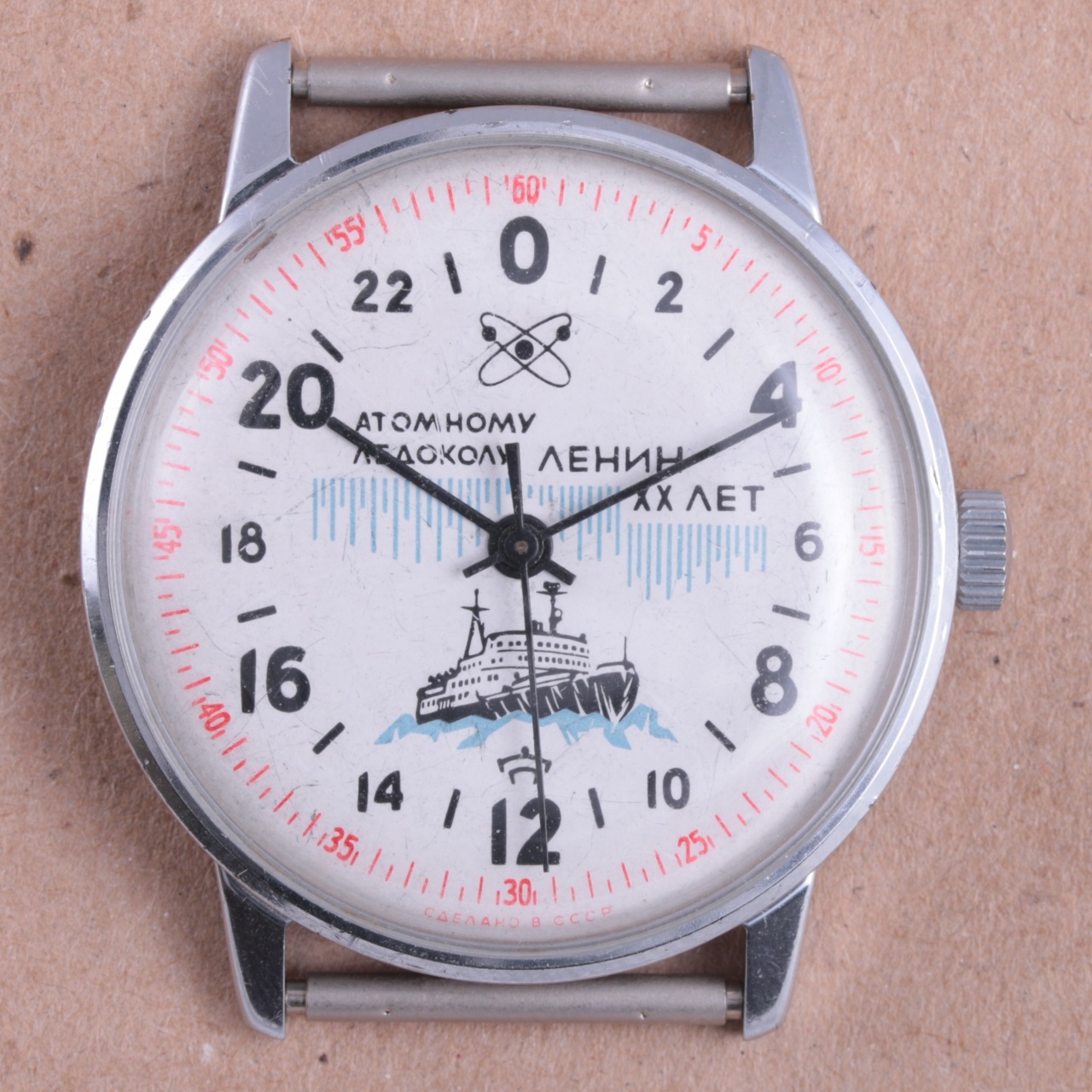 Здесь вторая обещанная серия. Ледоколу исполнилось ХХ лет в 1977 году. Таких часов я видел и в солидных коллекциях, значит вроде бы правильние. И циферы своим исполнением очень похожие на серию "Участнику Антарктической Экспедиции". Думаю, что изготовлены в одно время.