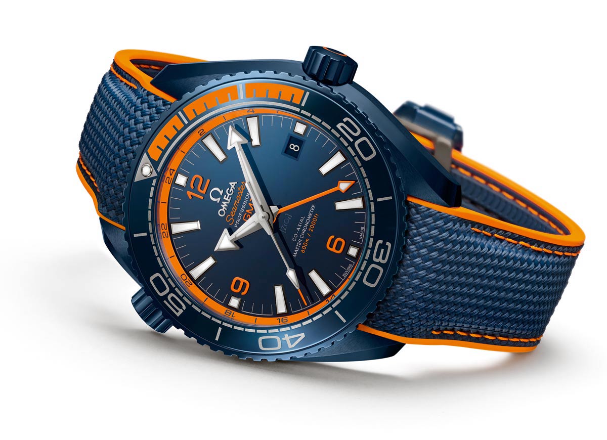 Новинка имеет круглый моноблочный корпус, изготовленный из синей керамики, диаметром 45,5 мм, водонепроницаемый до 600 метров. На торце завинчивающейся рифленой заводной головки, расположенной на 3 часах, выгравирован логотип бренда Omega. Вращающийся однонаправленный керамический дайверский безель. На 10 часах размещен гелиевый клапан. Сапфировое стекло установлено на передней стороне часового корпуса (выпуклое, с антибликовым покрытием) и на его завинчивающейся задней крышке. Циферблат синего цвета, с накладными арабскими цифрами и часовыми индексами, покрытыми, как и стрелки, люминесцентным составом SuperLumiNova белого цвета. Модель оснащена мануфактурным швейцарским автоматическим коаксиальным механизмом Omega 8906, с балансовой частотой 25200 полуколебаний в час (3,5 гц), двумя заводными барабанами, 60-часовым запасом хода, кремниевой спиралью, функциями индикации часов, минут, секунд (посредством соответствующих центральных стрелок), даты (посредством соответствующего цифрового указателя в прямоугольной апертуре, расположенной на 3 часах) и времени второго часового пояса (посредством соответствующей центральной стрелки оранжевого цвета на круглой оранжевой 24-часовой шкале, расположенной на периферии циферблата). Калибр официально сертифицирован Swiss Federal Institute of Metrology (METAS) в качестве Master Chronometer. Устойчив к воздействию магнитных полей, достигающих 15000 Гс. Калибр отлично отделан и декорирован.