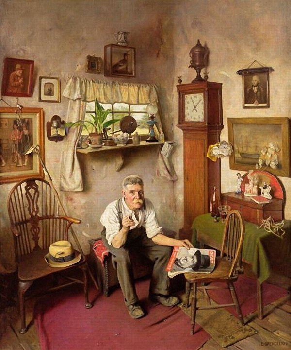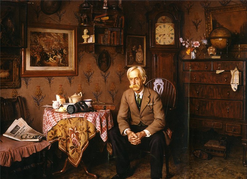 Чарльз Спенслей Charles Spencelayh 27 октября 1865 - 25 июня 1958 Вложение 123928 Charles Spencelayh My Reflection (Мое отражение). Выдающийся английский живописец и жанровый портретист в академическом стиле, творивший с конца викторианской эпохи до середины XX века. В 1885 году юноша поступил в Королевский колледж искусств (Национальное художественное училище) в Южном Кенсингтоне. С 1892 года Спенслей учился в Королевской Академии искусств, после чего уехал в Париж, где выставлялся на Парижском Салоне. Между 1892 и 1958 годами, Спенслей показал более 30 картин в Королевской Академии, в том числе и свою знаменитую работу "Почему война" (1939), которая выиграла в Академии конкурс «Картина года». В военное время художник часто «потворствовал» национальным чувствам, работая над патриотическими темами. Его работы часто печатались на календарях и поздравительных открытках, что приносило художнику неплохой доход. Спенслей стал известен благодаря своим многочисленным живописным работам, но его не менее высоко ценили как акварелиста, гравера и мастера портретных миниатюр. Художник был также одним из основателей Королевского общества художников-миниатюристов. Художник был любимцем королевы Марии, которая была страстным коллекционером его работ. В 1924 году Спенслей написал миниатюрный портрет короля Георга V для игрушечного кукольного дома королевы. Сын Спенслея – Вернон (1891-1980) тоже стал художником и продолжил викторианские традиции отца, работая в подобном стиле. Чарльз Спенслей умер в июне 1958 года в Нортамптоне в возрасте 93 лет. В Оксфордской энциклопедии написано, что художник оказался «устойчивым к современным событиям и направлениям в искусстве и продолжал традиции викторианской жанровой живописи даже во второй половине 20 века». Многие из его бытовых сцен имеют почти фотографическую детализацию. Писал Спенслей и натюрморты, например, "Яблоки" (1951). Работы Спенслея представлены в галерее Тейт в Лондоне и музее Харриса, в художественных галереях Бредфорда, Манчестера и Престона. 17 декабря 2009 года картина Спенслея "Старый дилер" была продана на аукционе Сотбис (Sotheby's) за 345 тысяч фунтов стерлингов. В одной из биографий художника я прочел: «Предметный мир его картин, где время как будто остановилось, очень многое может рассказать о викторианской эпохе». Может быть поэтому на большинстве его картин изображены часы. Вложение 123929 Charles Spencelayh Why War? 1939 г. Вложение 123930 Charles Spencelayh His Old Wedding Hat. Вложение 123931 Charles Spencelayh Here's To Victory. Вложение 123932 Charles Spencelayh The Empty Chair. Вложение 123933 Charles Spencelayh Listening to old records. Вложение 123934 Charles Spencelayh He's Worth Framing. Вложение 123935 Charles Spencelayh His Dreams. Вложение 123936 Charles Spencelayh A Lover of Dickens 1947 г. Источник: http://www.liveinternet.ru/users/2010239/post135908369 |