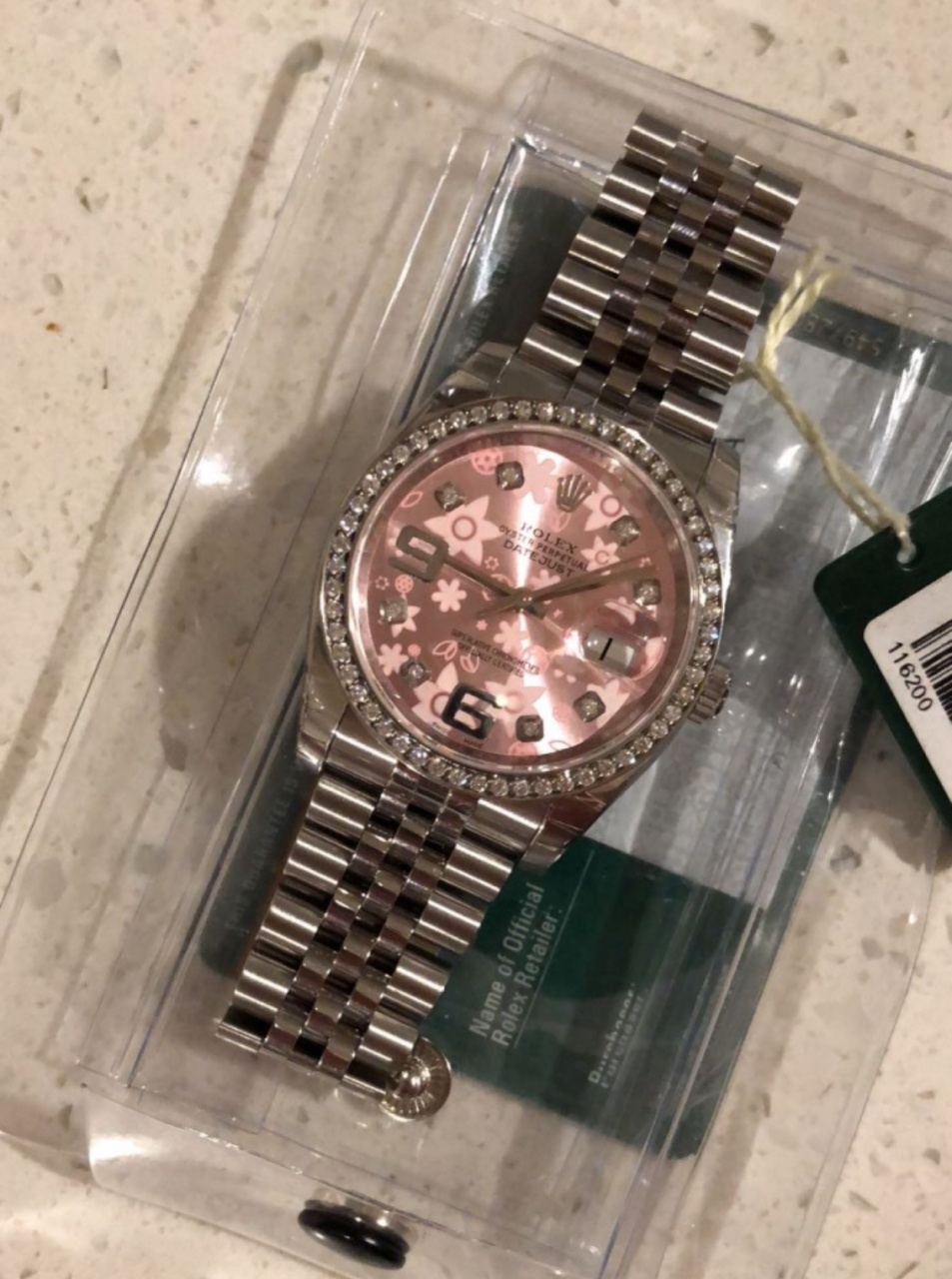Посмотрите Flower dial вживую . На джубили с рифленым безелем. Там розовый, не такой уж и "розовый". Если не розовый, то серебристый, коричневый, золотой, голубовато-серый, морская волна.