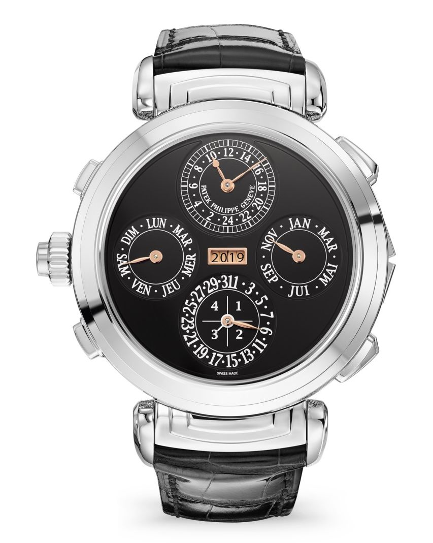 А почему бы и нет? Самые дорогие часы в мире (на сегодняшний день) Grandmaster Chime Steel от Patek Philippe. Модель оснащена мануфактурным швейцарским механизмом с ручным заводом Patek Philippe 300 GS AL 36-750 QIS FUS IRM с функциями индикации часов, минут, секунд, минутным репетиром Grande Sonnerie, Petite Sonnerie, индикатором типа боя, репетиром даты, будильником, индикатором запаса хода, индикатором запаса хода будильника, индикатором режима работы будильника, вторым часовым поясом, индикатором дня/ночи для второго часового пояса, мгновенного вечного календаря, индикаторами месяцев, дней недели, даты, указателем цикла високосных лет, четырехзначного указателя года, индикатором лунных фаз, индикатором положения заводной головки. http://forum.watch.ru/attachment.php...4&d=1562178255 http://forum.watch.ru/attachment.php...5&d=1562178263 https://i.imgur.com/I0xdeSG.jpg |