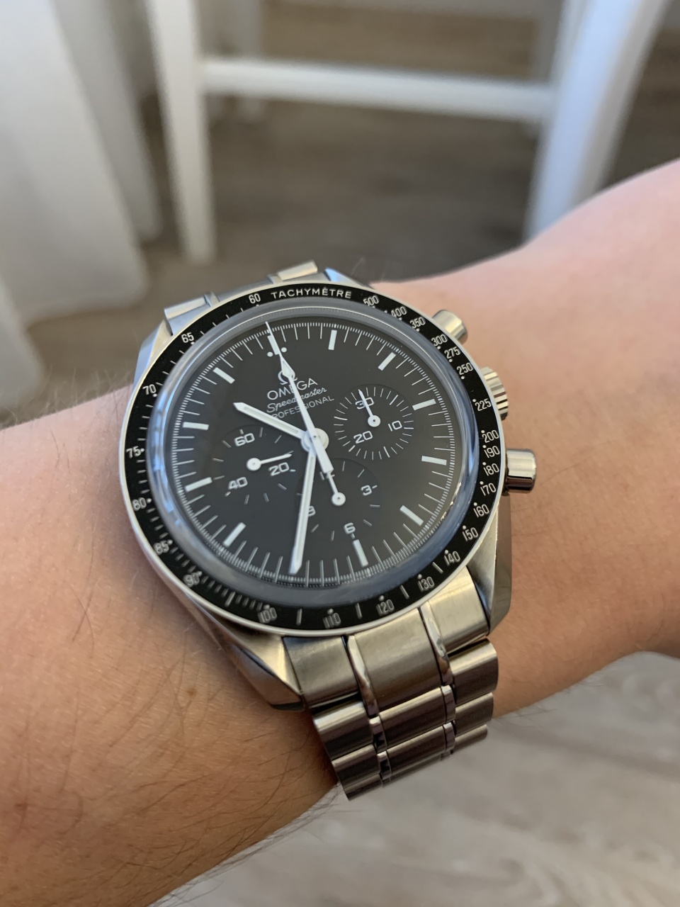 Никогда не любил хронографы, но, как фанат Омеги, не мог пройти мимо культового Moonwatch Professional в своей коллекции. Выбирал между тру-космическим хезалитом и более практичным сапфиром. Взял сапфир. Буду носить по вторникам. Так как это мой первый хронограф, то есть ряд глупых вопросов, именно про эти часы: