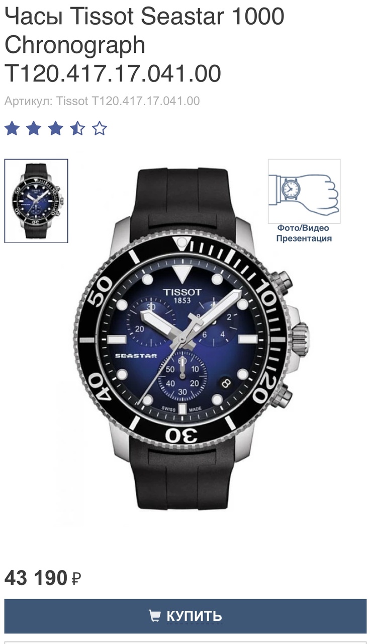 Ну, как минимум, реф (T120.417.37.051.02) на оф. сайте показывает другую расцветку. Там есть что-то похожее на https://www.tissotwatches.com/ru-ru/t1204173705100.html