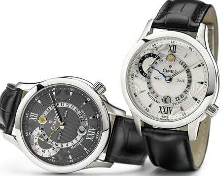 На циферблате новых часов от Cimier стрелки указывают на каждый из 24 часов в сутки. Кроме того, на циферблате есть индикаторы полдня и полночи (Солнце и Луна, соответственно). Этот дополнительный модуль "оживляет" отображение времени на циферблате. Часы оснащены механизмом ETA/Unitas 6497-1 с ручным заводом, на 17 камнях, с противоударной системой Incabloc, частотой 18000 полуколебаний в час. Функции: часы, минуты и секунды. Механизм отделан Cotes de Geneve. Прозрачная задняя крышка позволяет им любоваться. Корпус стальной, полированный, диаметром 43 мм. Изогнутое сапфировое стекло с антибликовым покрытием. Заводная головка на 4 часах. Водозащита корпуса до 5 АТМ. Циферблат часов в двух вариантах цветов: серебристом или черном. Ремешок ручной работы из кожи луизианского аллигатора с застежкой. Источник: http://watches.infoniac.com/nuit-et-...r-watches.html |
