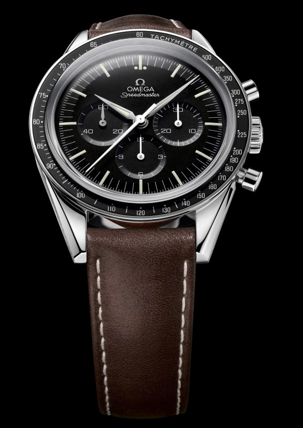 И вот, в ознаменование 50-летия первого выхода Speedmaster на орбиту Земли, швейцарская часовая компания OMEGA выпустила новую модель Speedmaster "First Omega in Space", которая будет представлена на международной выставке Baselworld-2012. У новинки круглый корпус из частично полированной и частично сатинированной нержавеющей стали, диаметром 39,70 мм, водонепроницаемый до 50 метров. Черный алюминиевый безель с тахиметрической шкалой. Задняя крышка завинчивающаяся, с изображением морского конька и с надписью "THE FIRST OMEGA IN SPACE" и "OCTOBER 3". Сапфировое стекло защищает черный лакированный циферблат с часовыми индексами, часовой и минутной стрелками, покрытыми белым люминесцентным составом SuperLumiNova. Модель оснащена легендарным механизмом 1861 (заработавшем свою репутацию в модели OMEGA Speedmaster Moonwatch), с функциями индикации часов, минут (посредством соответствующих центральных стрелок), секунд (на малом боковом циферблате на 9 часах), а также с хронографом (центральная секундная стрелка, 30-минутный счетчик на 3 часах, 12-часовый счетчик на 6 часах). Коричневый кожаный ремешок с бежевой прошивкой и с застежкой из нержавеющей стали. Каждая модель Speedmaster "First Omega in Space" является пронумерованной и ее порядковый номер выгравирован на задней крышке. Вложение 228636 Источник: http://www.wristwatchfan.com/2012/03...n-chronograph/ |